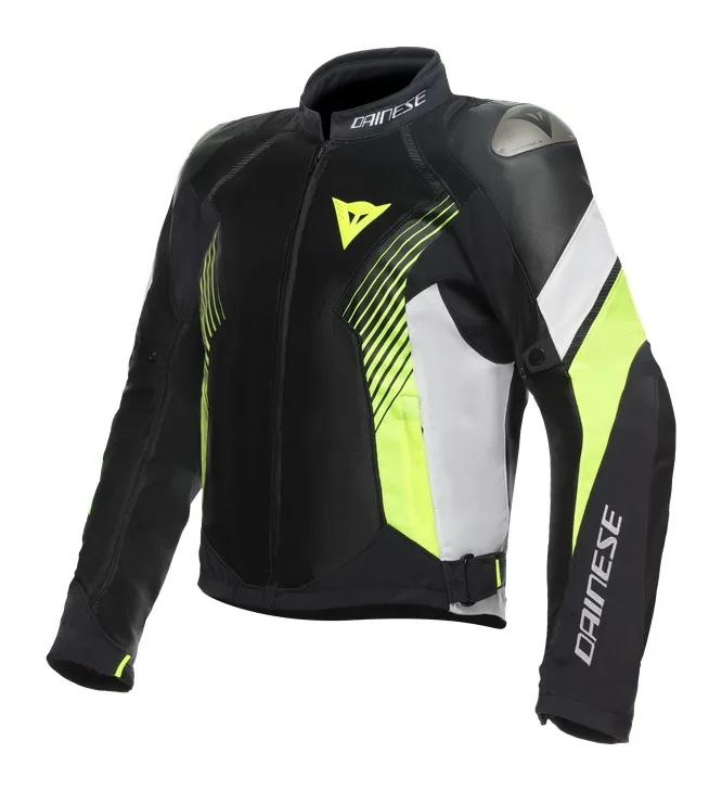 Куртка Super Rider 2 Absoluteshell от Dainese является лидером в области водонепроницаемых летних курток. В куртке, сертифицированной по стандарту EN 17092 класса A, используется прочная основа из ткани Mugello, обтянутая кожей на плечах, плечах и локтях. Плечи также получили внешние жесткие алюминиевые слайдеры. На второстепенных участках применяется стратегическое использование воздухопроницаемой сетки. Водонепроницаемую подкладку из запатентованного материала Dainese Absoluteshell легко снять или можно носить как отдельный дождевик.
