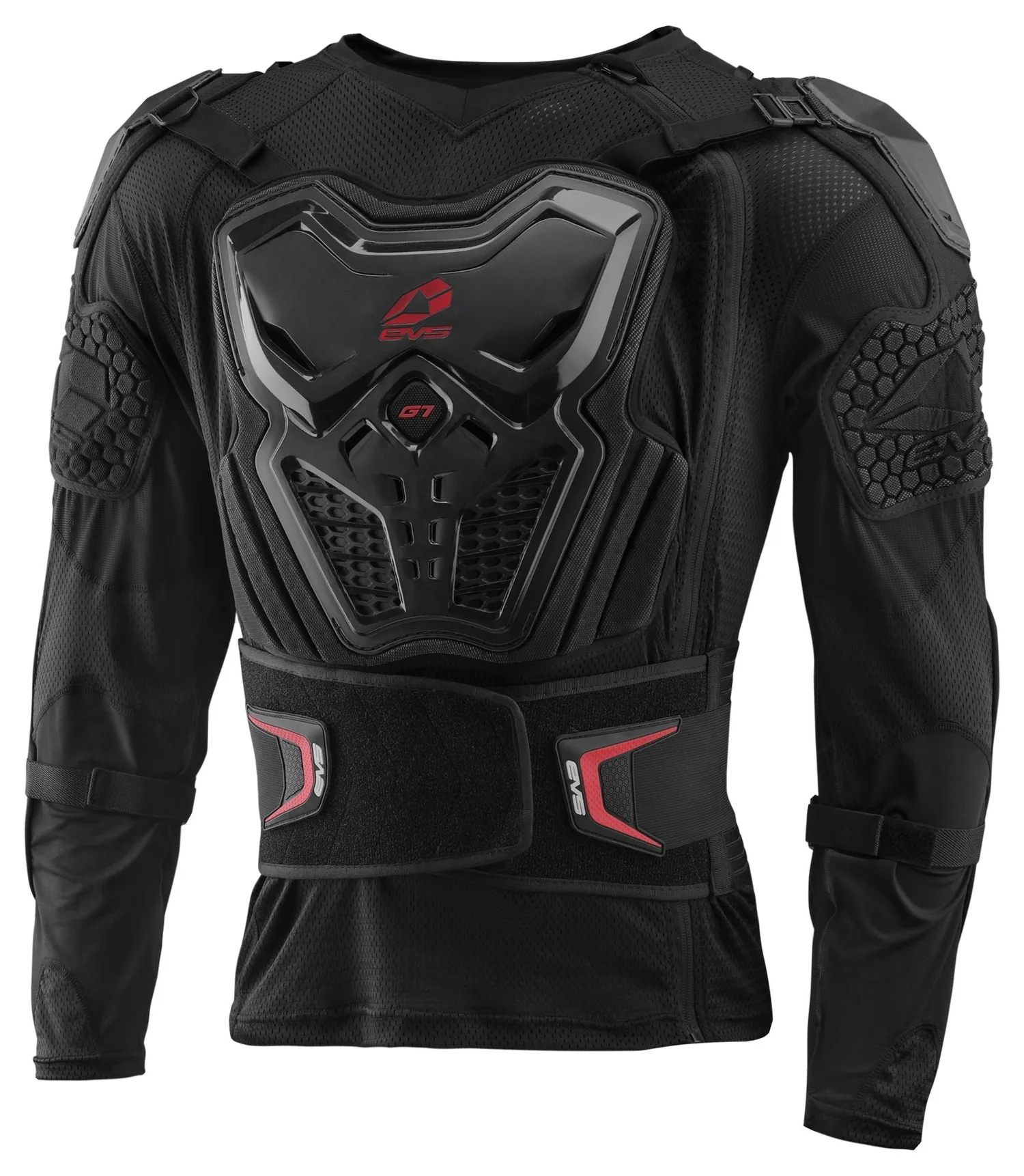 EVS G7 - это легкий, дышащий баллистический трикотаж, предназначенный для максимальной защиты верхней части тела и комфорта в течение всего дня. Особенности включают в себя жесткие пластиковые панели, закрывающие грудь, спину, руки и плечи. G7 также имеет удобную систему бокового входа со встроенным ремнем для почек, который поддерживает нижнюю часть спины и защищает почки.