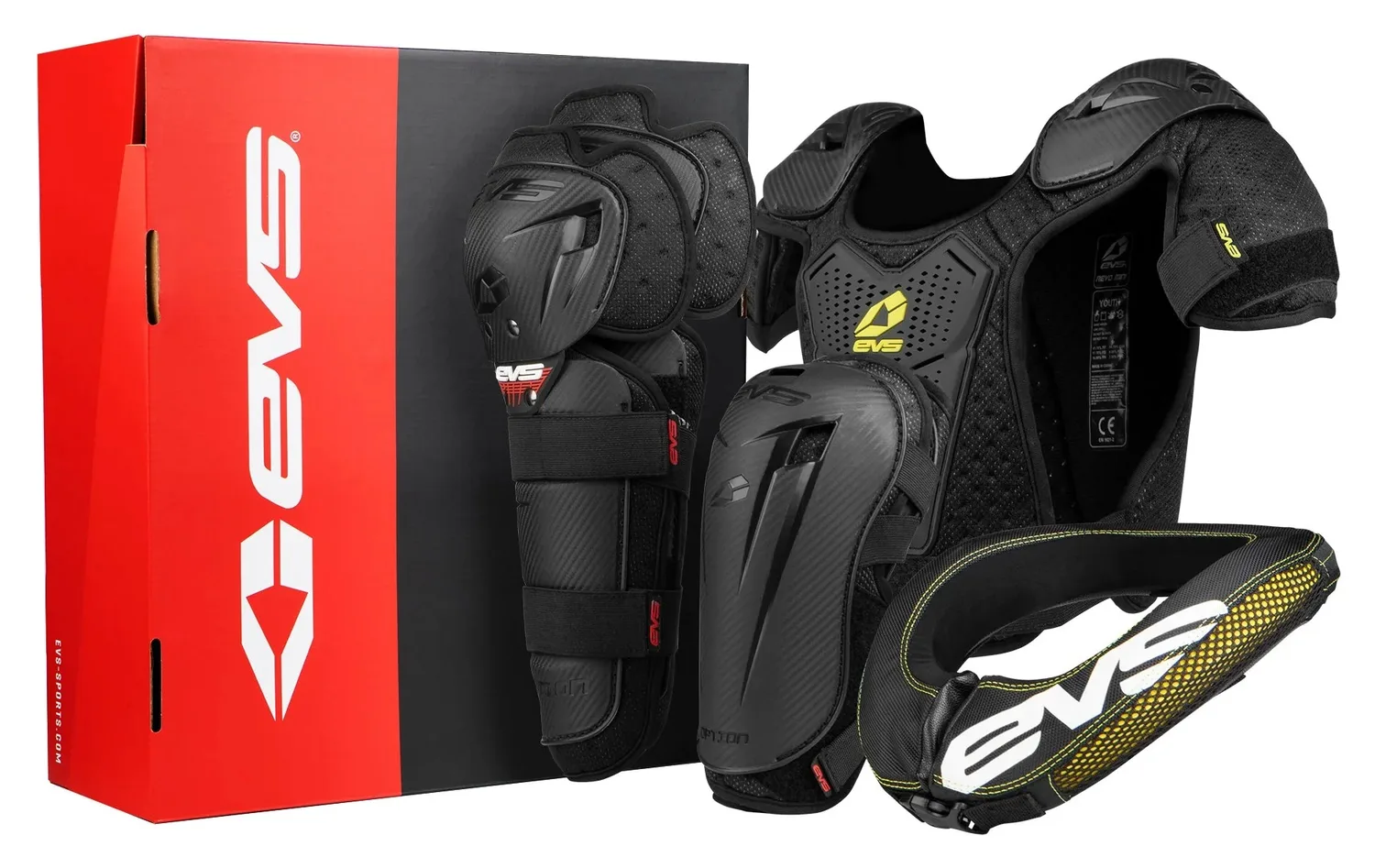 Комплект EVS Mini Slam Combo представляет собой идеальную комбинацию защиты для юных гонщиков, предлагаемую за небольшую цену. Включает дефлектор EVS Mini Bantam Roost, ошейник R2 Race, дополнительные наколенники и дополнительные налокотники.