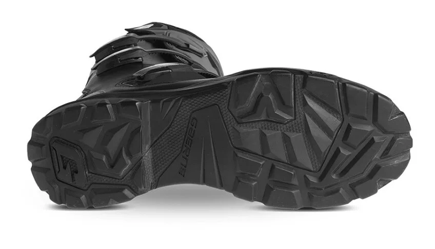 Эксклюзивная подошва из вулканизированной резины с четкими зонами сцепления улучшает сцепление и стабильность