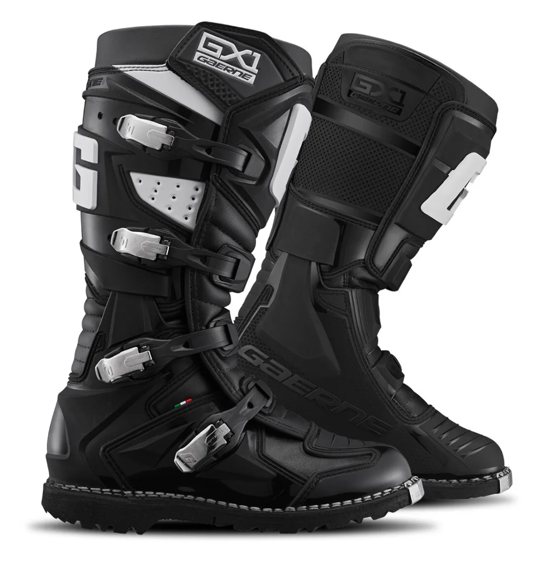 Ремесленная конструкция ранта Gaerne Goodyear, метод, постоянно используемый Gaerne с 1962 года, обеспечивает создание прочной и долговечной конструкции подошвы. Приверженность качеству изготовления и долговечности стала краеугольным камнем ботинок Gaerne. Ботинки эндуро GX-1 оснащены специальной подошвой, созданной с учетом требований эндуро-езды, обеспечивающей улучшенное сцепление, долговечность и производительность. Эндуро сертифицированы CE в соответствии со стандартом EN 13634:2017 и Регламентом ЕС 2016/425.