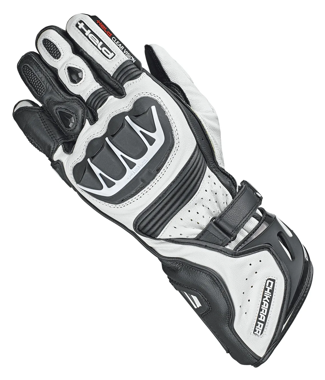 Готовые к гонкам перчатки Held Chikara имеют мягкую кожу кенгуру на ладонях и козью кожу на тыльной стороне кистей. Эти перчатки без подкладки, поэтому через перфорации на запястье проходит воздух, направляя охлаждающий воздух прямо к точкам пульса. Усиления SuperFabric на пальцах и внешней стороне кисти устойчивы к порезам и истиранию. Манжета с двойной застежкой обеспечивает индивидуальную регулировку, чтобы перчатки Chikara RR надежно держались на руках в случае падения.