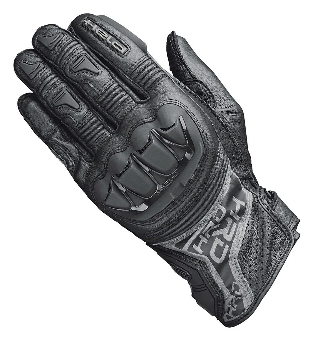 Перчатки Held Kakuda изготовлены из козьей кожи с защитой суставов пальцев из твердого пластика. Перфорированные кожаные панели и боковые пальцы предотвращают нагрев рук. Кончики пальцев, совместимые с сенсорным экраном, позволяют пользоваться смартфоном, не снимая перчаток./p>