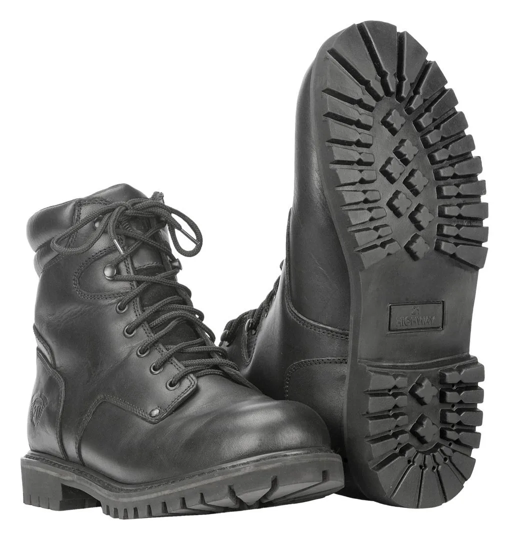 Ботинки Highway 21 RPM - это простые рабочие ботинки из черной натуральной кожи со 100% водонепроницаемой подкладкой HiPora, которая сохраняет ваши собаки сухими во время езды в сырую погоду. Ботинки RPM - это обычные ботинки со шнуровкой для обычных райдеров.