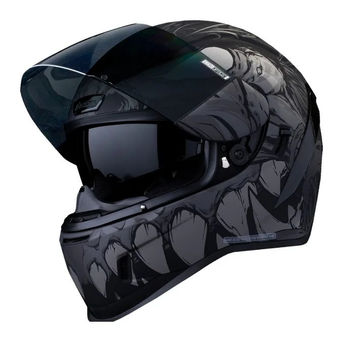 В комплект входят тонированные и прозрачные незапотевающие лицевые щитки Icon Optics «Черные» шлемы имеют темный дымчатый, беззеркальный лицевой щиток Все другие варианты цвета включают зеркальный лицевой щиток (см. изображения)