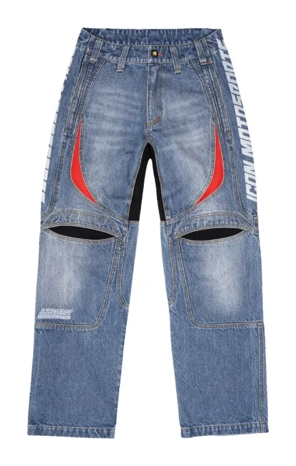 Прочное шасси из ткани Cordura Denim с двухслойными вставками на коленях делает эти джинсы достаточно прочными для прогулок по улицам.