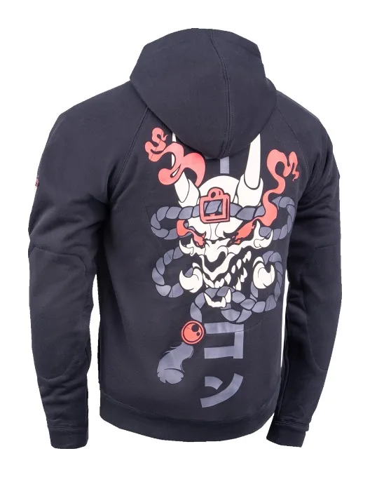 Вдохновленная легендой о Такияся-химэ, толстовка Uparmor Okoduro из эластичного поли-армированного хлопка/полиэстера плотностью 10 унций несет на себе отпечаток колоссального духа скелета. Под легендой скрывается точная защита: броня D3O Ghost уровня 1 на плечах и локтях и защита спины D3O Viper уровня 1. Светоотражающие полоски вспыхивают под уличными фонарями - сигнал союзникам и предупреждение врагам. Толстовка Odokuro создана для воинов асфальта. Кандзи читает: I C O N