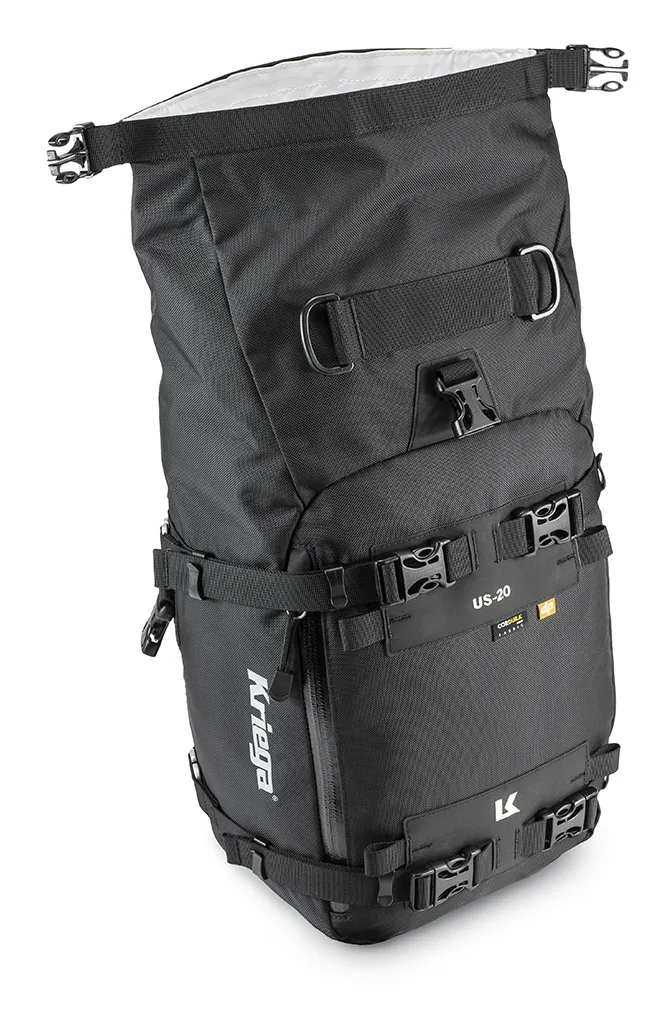 Kriega US-20 - это отмеченный наградами высококачественный мотоциклетный багаж вместимостью 20 литров. Как и все сумки Kriega в США, это 100% водонепроницаемый сухой рюкзак инновационного дизайна, который крепится к задней части велосипеда с помощью входящих в комплект петель с пряжками и ремней с крючками из сплава. Мотоциклетная сумка Kriega US-20 оснащена съемными плечевыми и поясными ремнями. Его можно носить курьером, на велосипеде или без него. Его также можно использовать в качестве сумки на бак (с добавлением адаптера для бака США) или в сочетании с другими рюкзаками для США, чтобы создать чрезвычайно адаптируемую, модульную, мягкую систему багажа.