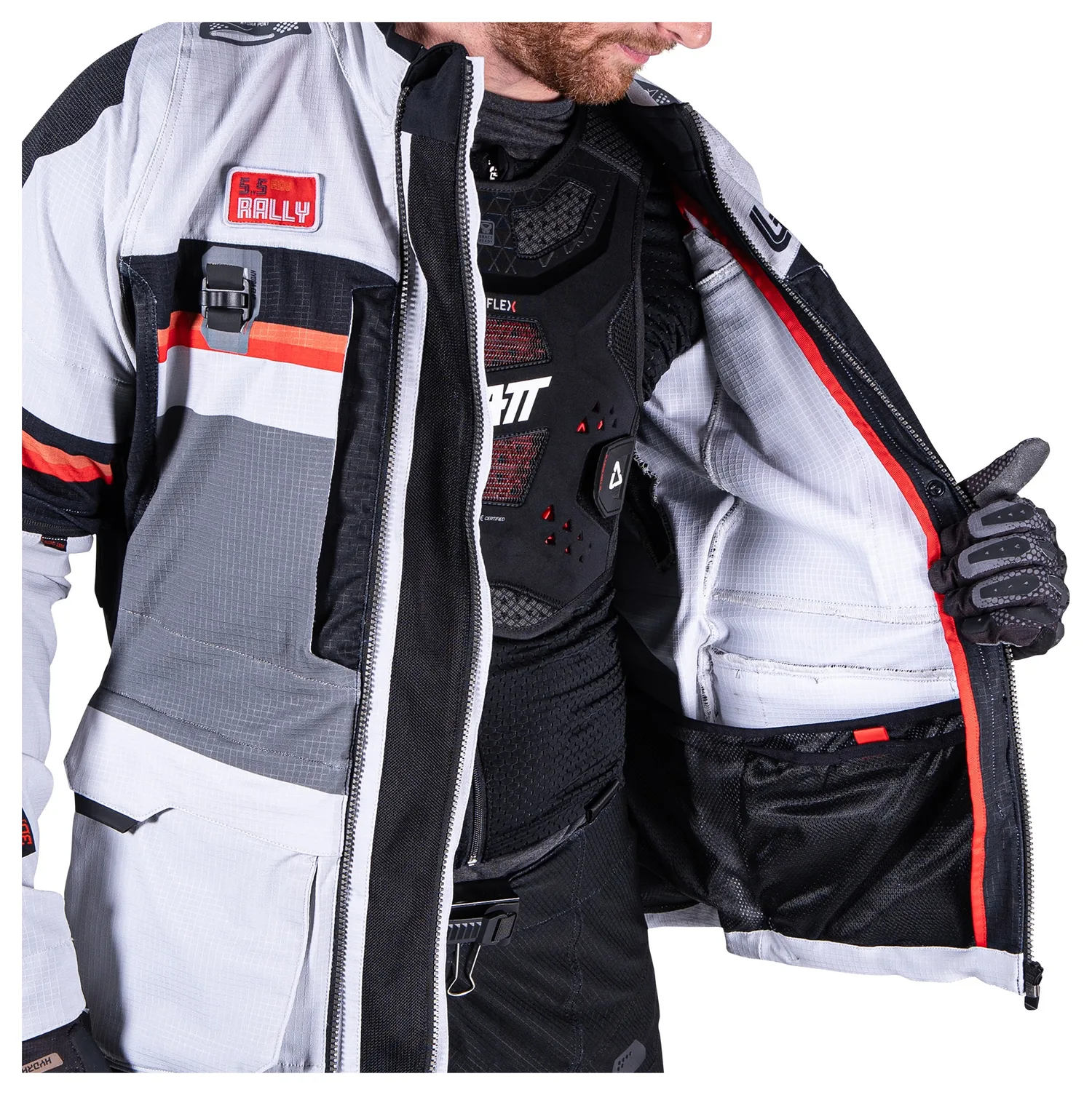 Куртка ADV Rally 5.5 сочетает в себе дух приключенческой езды с высокими характеристиками. Он предназначен для использования как на дорогах, так и на бездорожье, обеспечивая легкую гибкость и надежную защиту. Благодаря прочной эластичной ткани ADV Rally 5.5 исключительно эргономичен. Защитная подкладка включает в себя знаменитый 3DF от Leatt для защиты уровня 1 CE на плечах, спине, локтях и груди (дополнительная опция). Куртка уникальна и универсальна, поскольку защитную подкладку можно полностью снять, что позволяет водителю при желании переключиться на защиту всего тела. Куртка имеет отличную вентиляцию. Перекрывающуюся переднюю молнию можно полностью открыть, чтобы открыть полную вентиляционную сетку спереди, а можно снять дужки, которые засасывают воздух в куртку, обеспечивая непревзойденную вентиляцию. Этот прохладный воздух циркулирует внутри куртки, выталкивая теплый воздух через выпускное отверстие в верхней части спины.