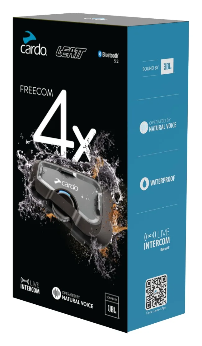 Leatt Intercom Freecom 4X от Cardo предлагает набор функций премиум-класса для общения в небольших группах с упором на качество звука и простоту использования. Он использует технологию Live Bluetooth Intercom, обеспечивающую широкополосный звук и самовосстанавливающееся соединение для четырех гонщиков на расстоянии до 0,75 мили (1,2 км). Благодаря функции Natural Voice Operation вы можете управлять устройством без помощи рук, наслаждаясь музыкой и общением через высококачественные 40-мм динамики JBL. Freecom 4X имеет водонепроницаемый дизайн IP65, 13 часов автономной работы и удобное обновление программного обеспечения по беспроводной сети, что обеспечивает надежное и кристально чистое звучание.