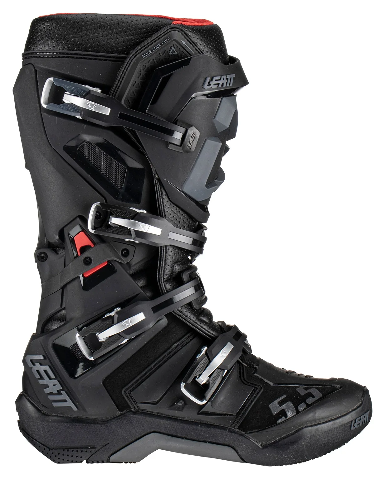 Ботинки Leatt Moto 5.5 FlexLock соответствуют всем требованиям. Превосходный комфорт для ног любого размера благодаря дышащей внутренней подкладке. Автоматически блокирующаяся односторонняя скользящая застежка обеспечивает надежную верхнюю изоляцию от грязи.