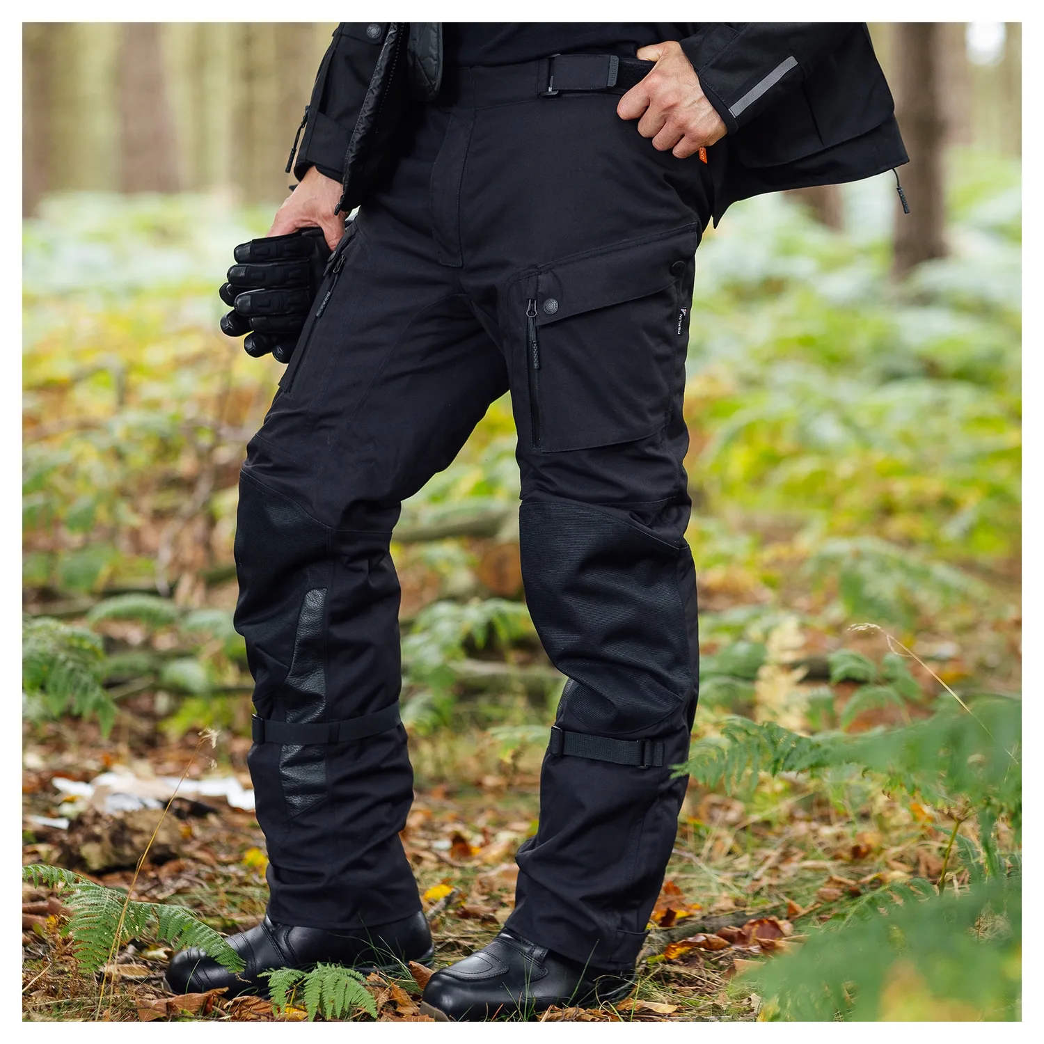 Брюки Merlin Condor D3O идеально сочетаются с куртками Solitude и Sayan и могут соединяться как с длинными, так и с короткими молниями, а также имеют такую ​​же высококачественную внешнюю оболочку из ламината AquaSeal+. Точки регулировки на талии и икрах помогают гонщикам обеспечить индивидуальную посадку, а водонепроницаемые молнии YKK открываются, обеспечивая лучшую циркуляцию воздуха во время теплых поездок. Длинная молния с ластовицей на лодыжке позволяет легко надевать более объемные ботинки в приключенческом стиле.