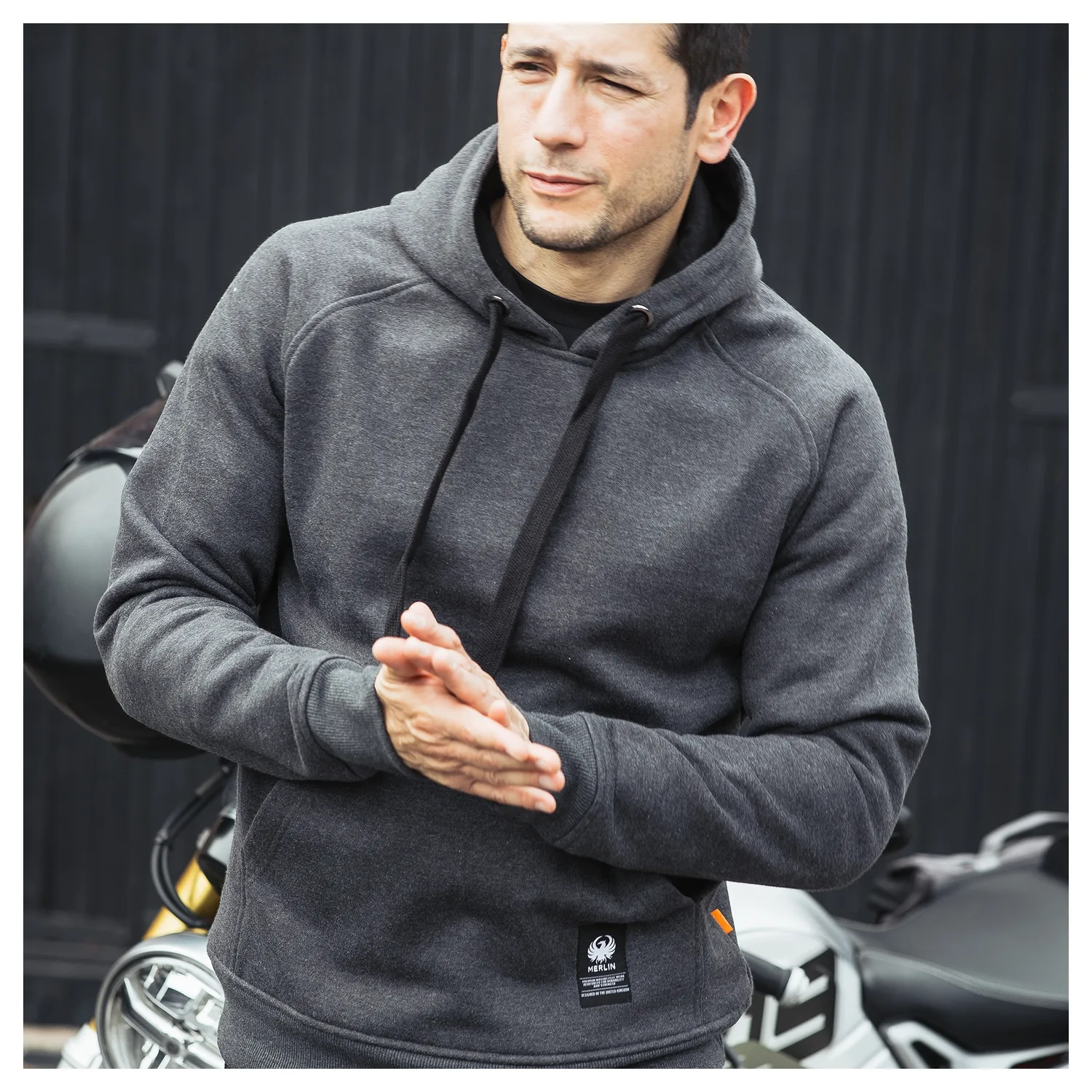 Толстовка Merlin Stealth Pro D3O сочетает в себе сдержанный стиль и современную защиту для мотоциклистов. Эта сверхмягкая толстовка изготовлена ​​из кевлара, повышающего ее устойчивость к истиранию, и состоит из одного слоя монофлиса. Дополнительную защиту обеспечивает броня Ghost D3O, которая предварительно прикреплена к плечам и локтям. Плотная сетчатая подкладка и хлопковые ребристые манжеты повышают комфорт, а толстовка легко прикрепляется к брюкам Merlin с помощью застежки-молнии, соединяющей куртку с джинсами.