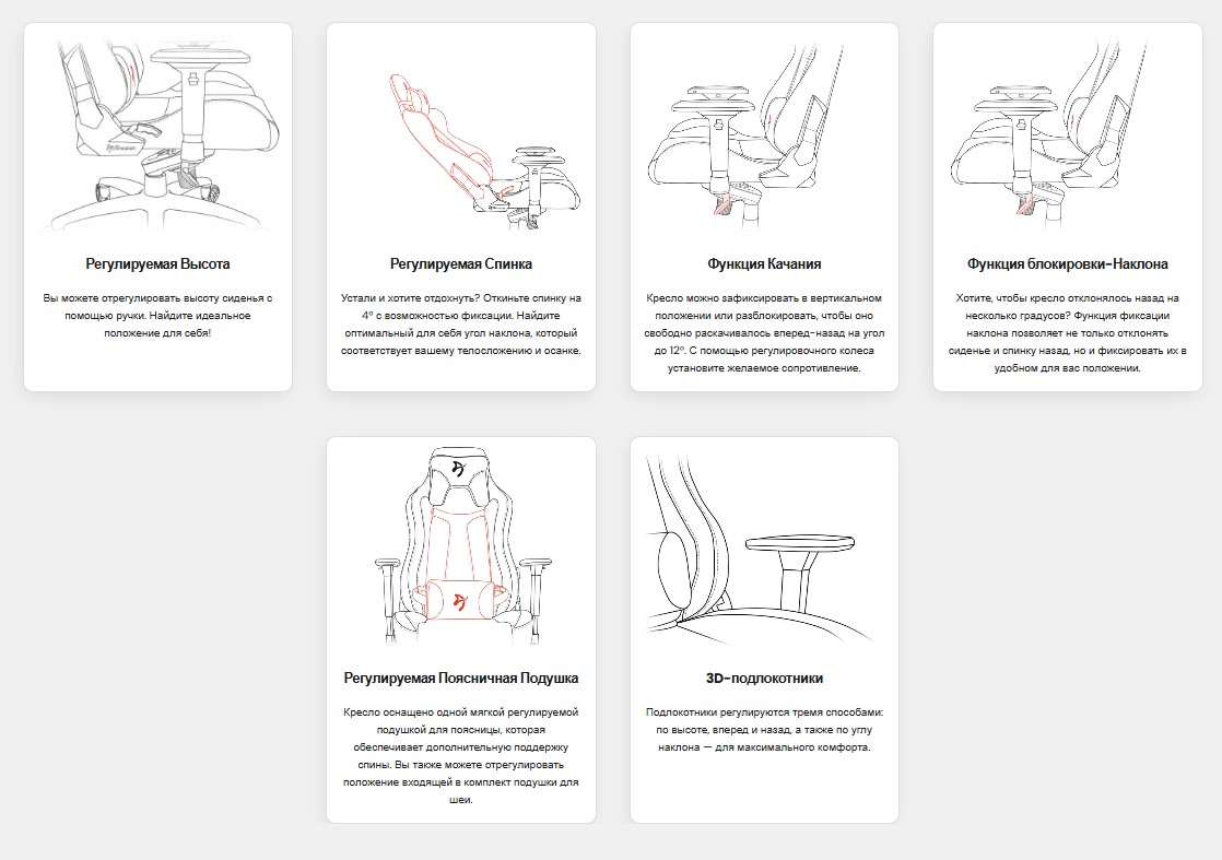 Угол наклона механизма сиденья: До 12°.