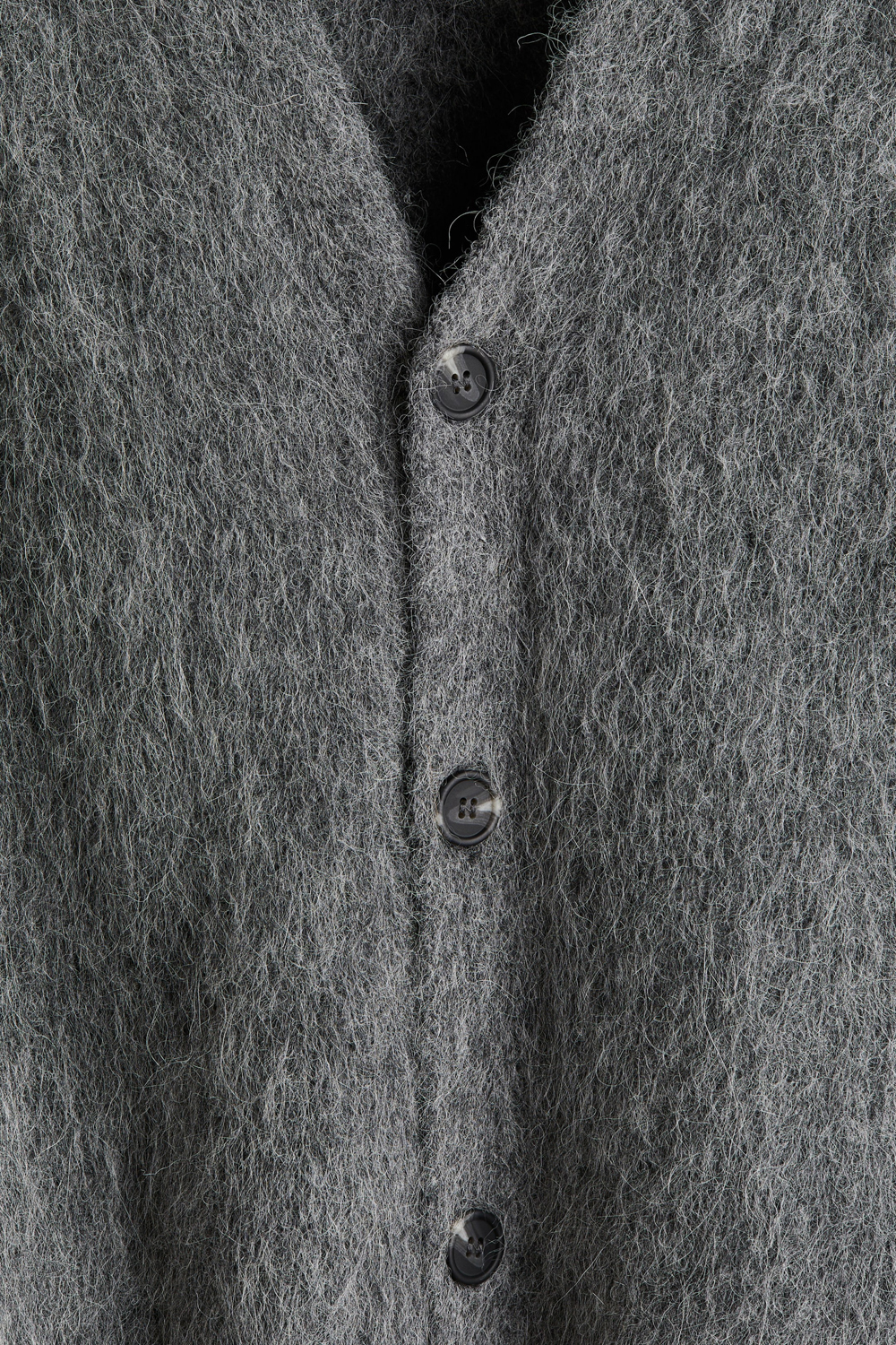 В основе этого кардигана — 58% нежнейшей шерсти альпаки. Это натуральное волокно ценится за свои терморегулирующие свойства: оно согревает в холод и не перегревает в тепле, при этом оно легче и прочнее овечьей шерсти, и абсолютно не колется. Альпака сертифицирована по стандарту Responsible Alpaca Standard (RAS), что гарантирует этичное происхождение и заботу о животных. Акрил и полиамид добавляют прочность и формоустойчивость, а эластан обеспечивает идеальную посадку и позволяет кардигану тянуться, возвращаясь в исходную форму.
