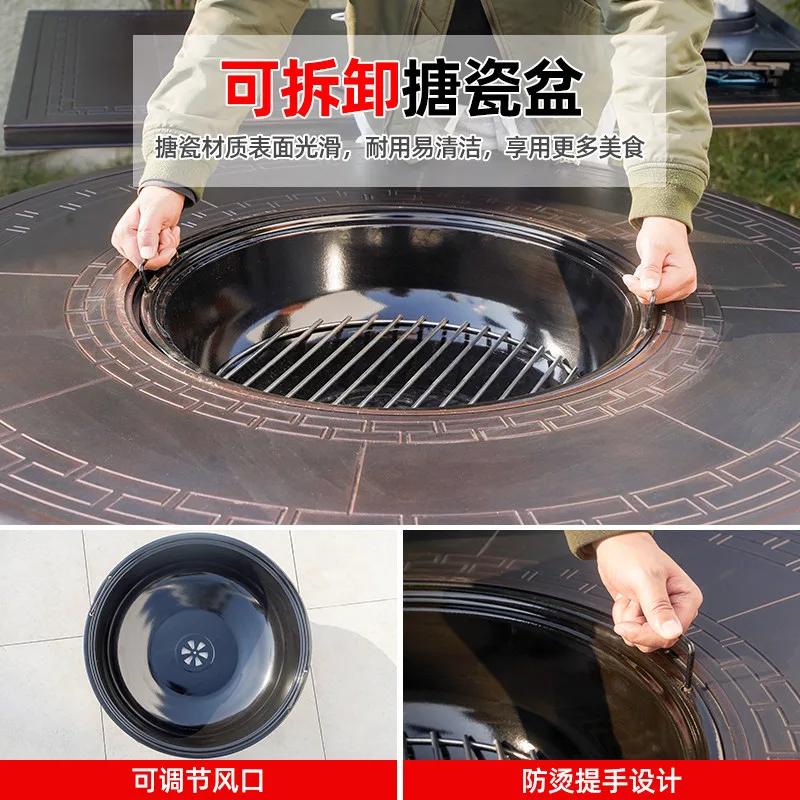 Стильное и функциональное решение для вашего сада, патио или террасы. Этот стол диаметром 1,2 метра объединяет в себе классическую обеденную зону и полноценную угольную гриль-станцию. Идеально подходит для уютных семейных праздников и барбекю-вечеринок на открытом воздухе.