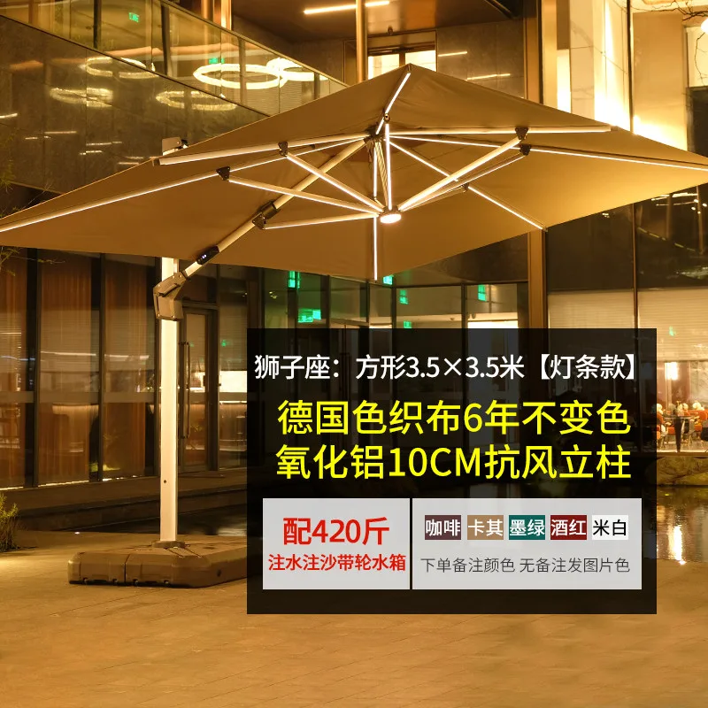 Солнцезащитный зонт Green Water со стойкой Leo, квадартный, 3,5x3,5 м, LED-подсветка, база до 210 кг, хаки 71 393₽