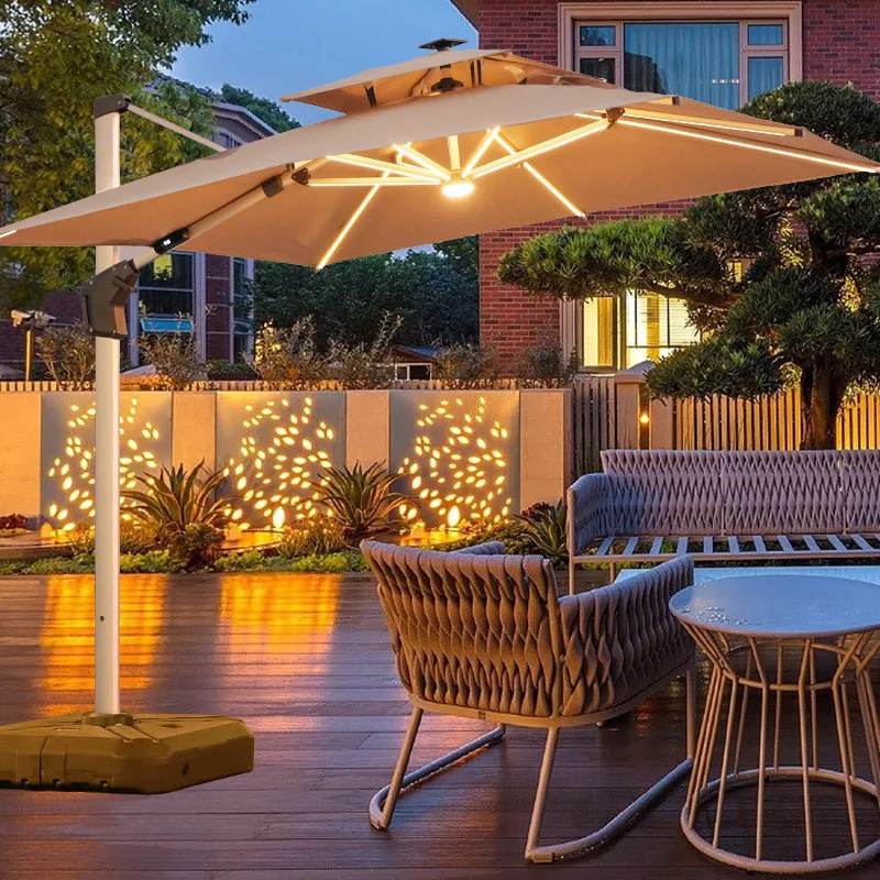 Солнцезащитный зонт Green Water со стойкой Sky City, квадартный, 3х3 м, LED-подсветка, база до 210 кг, хаки