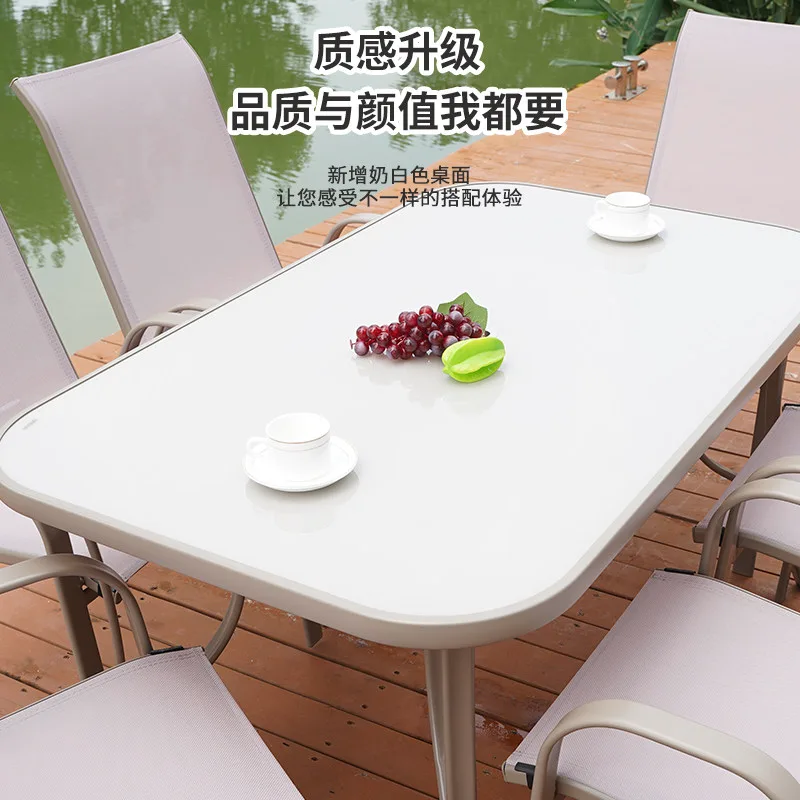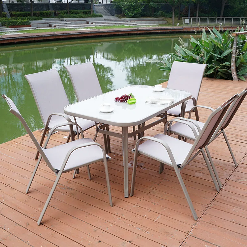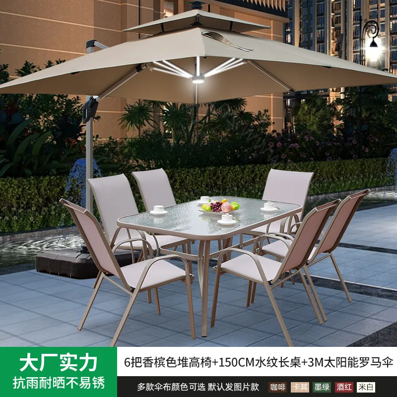 Комплект садовой мебели: 6 стульев, стол с волнообразным рисунком 150 см, зонт в римском стиле (№28)