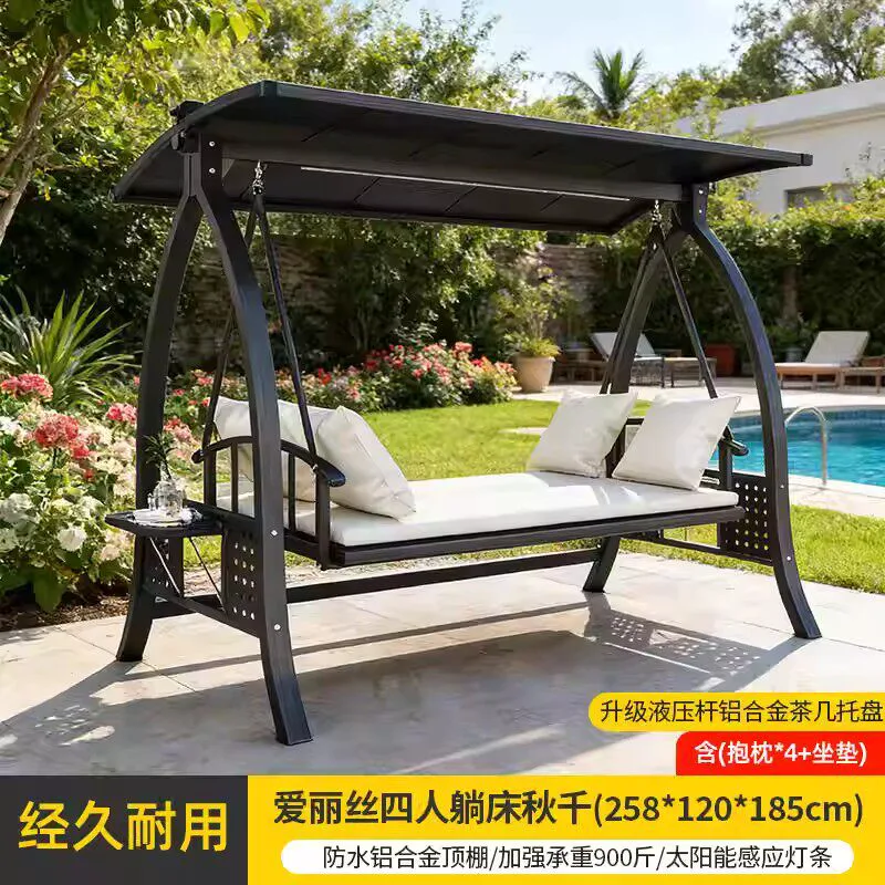• Защита и свет: Непромокаемый алюминиевый тент и встроенная LED-подсветка на солнечных батареях с датчиком движения.