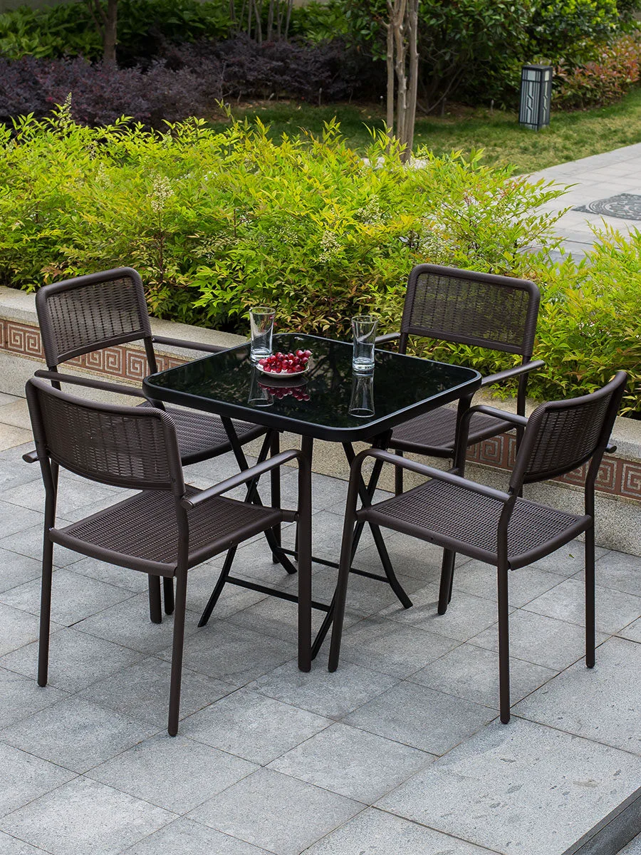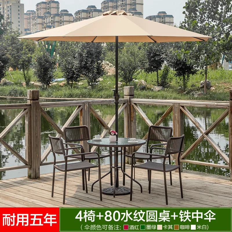 Комплект садовой мебели: 4 стула, стол круглый с узором 80 см, железный зонт