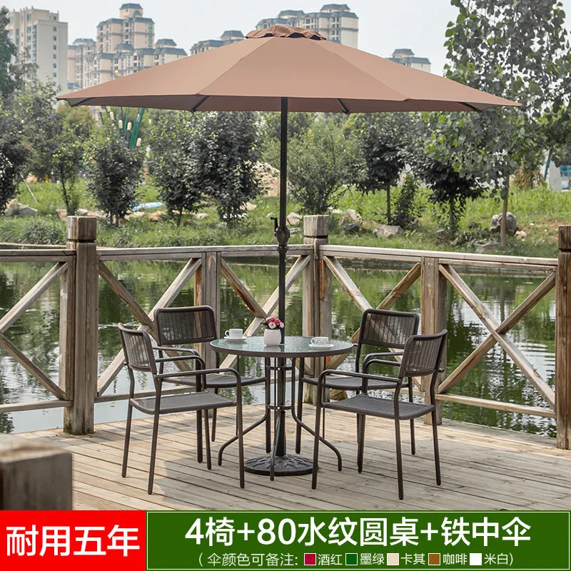Комплект садовой мебели: 4 стула, стол круглый с узором 80 см, зонт, подставка