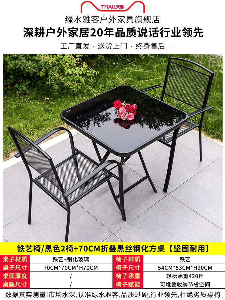 Комплект садовой мебели: 2 кованых стула, стол квадратный из закаленного стекла, черный