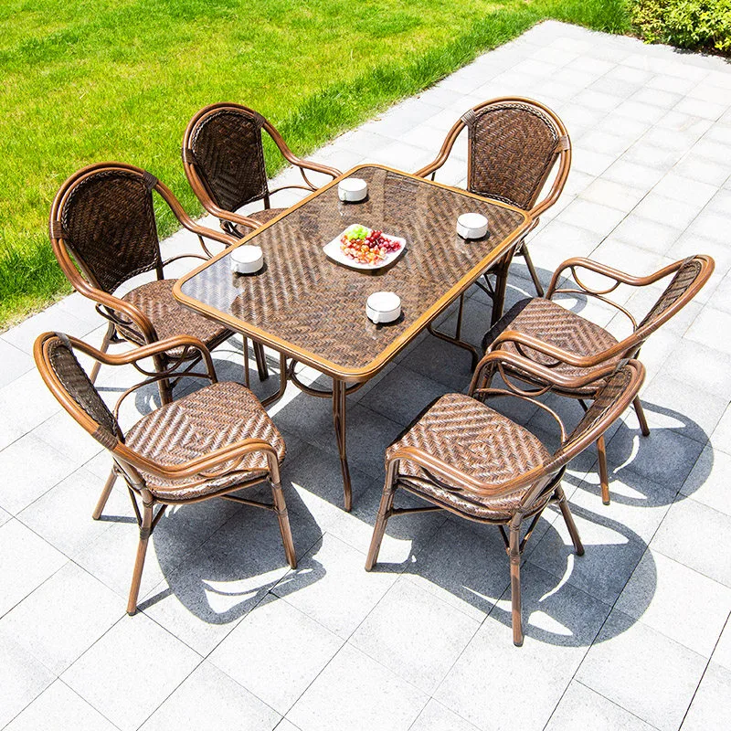 Комплект садовой мебели: 2 стула с высокой спинкой, стол квадратный с отделкой под дерево, 80 см (№03)