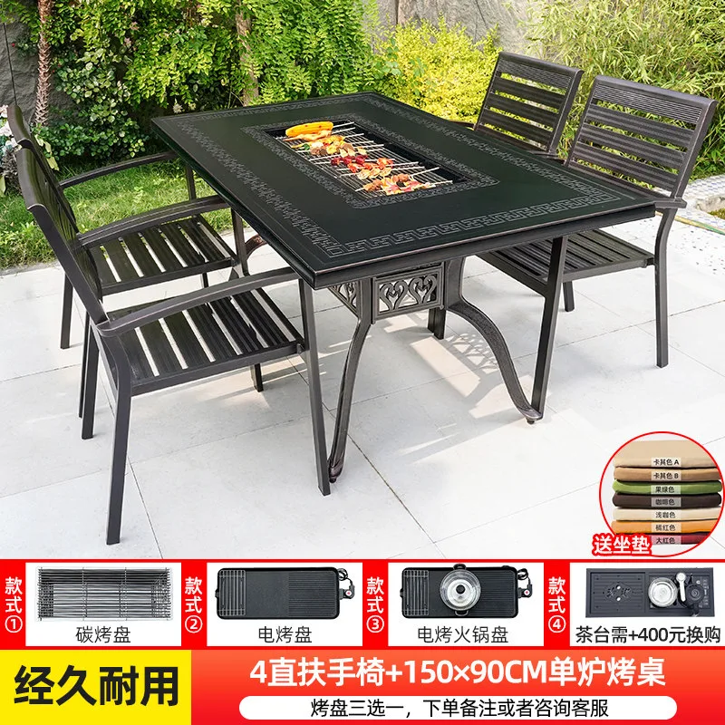 • Комплектация: 4 стула с прямыми подлокотниками («4直扶手椅») + прямоугольный стол с одной встроенной жаровней («单炉烤桌»).