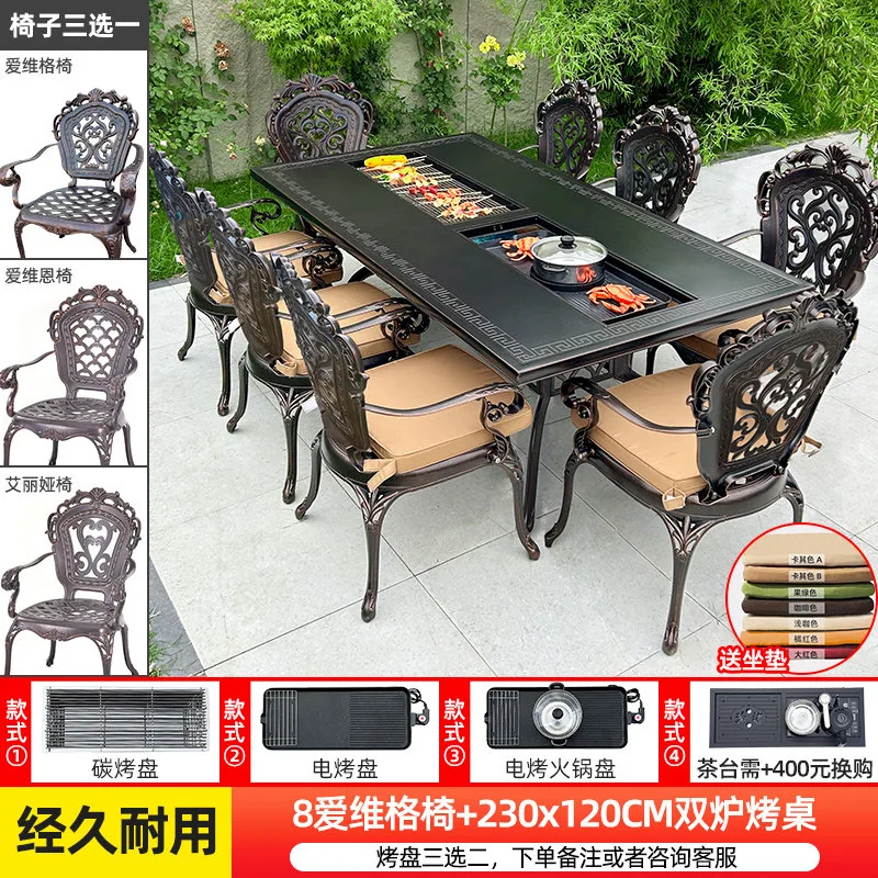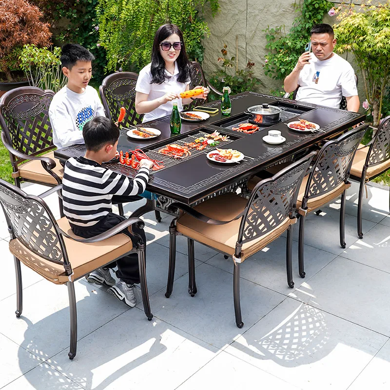 Этот комплект мебели — просторная обеденная группа для террасы или сада на 8 персон. Главная особенность стола — две встроенные зоны для приготовления еды.