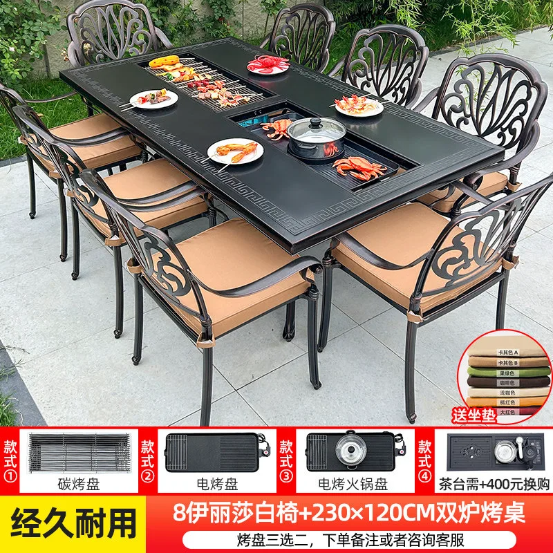 • Комплектация: 8 стульев модели «Илизавета» (伊丽莎白) с декоративными спинками + обеденный стол с двумя встроенными зонами для жарки.