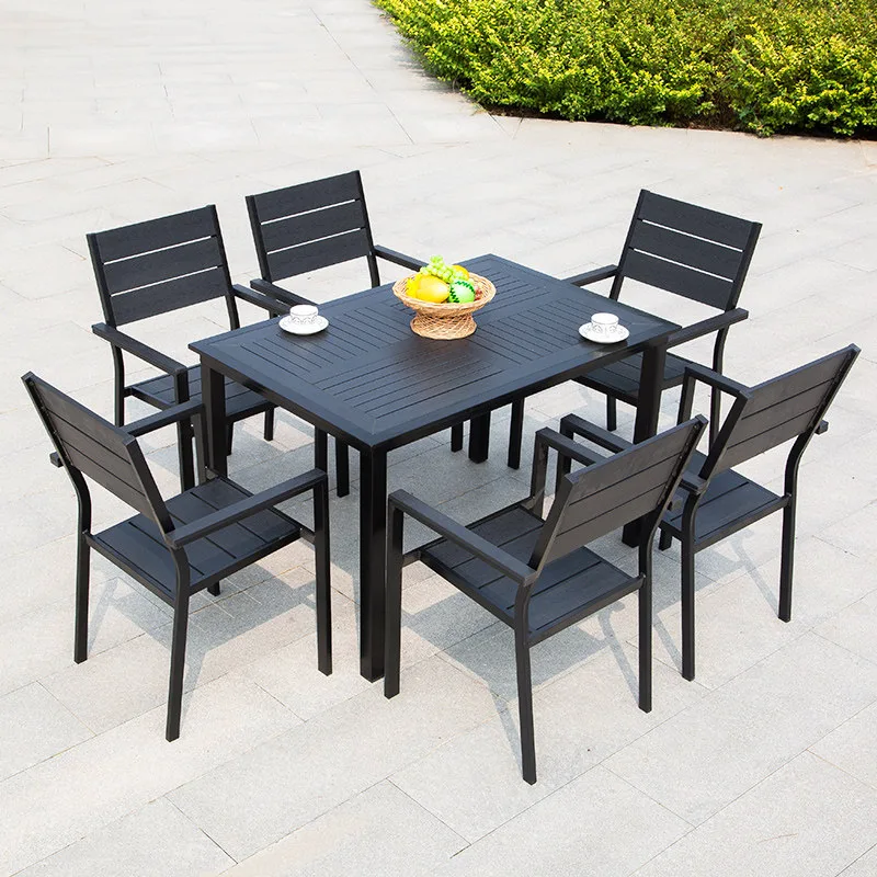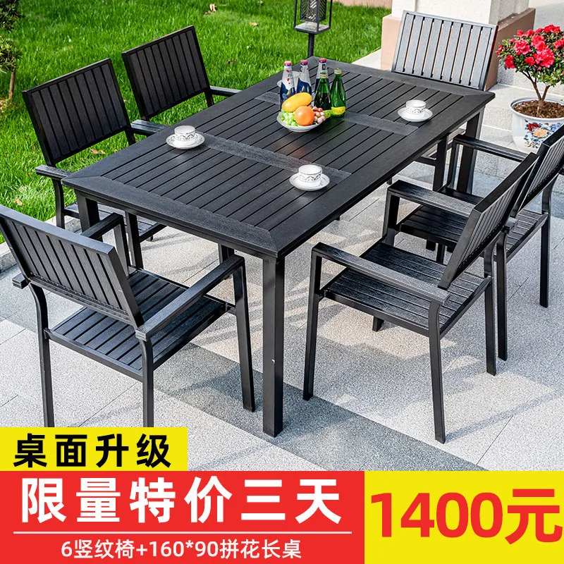 Комплект садовой мебели: 6 стульев в вертикальную полоску, стол с цветочным узором, 160x90 см