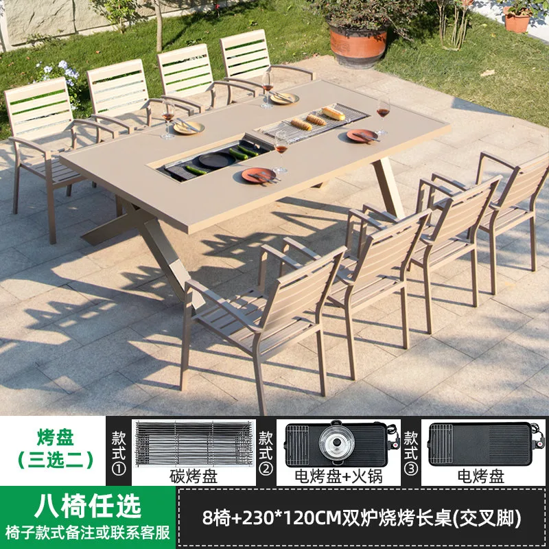 Комплект садовой мебели: 8 стульев, гриль-стол двойной, 230×120 см
