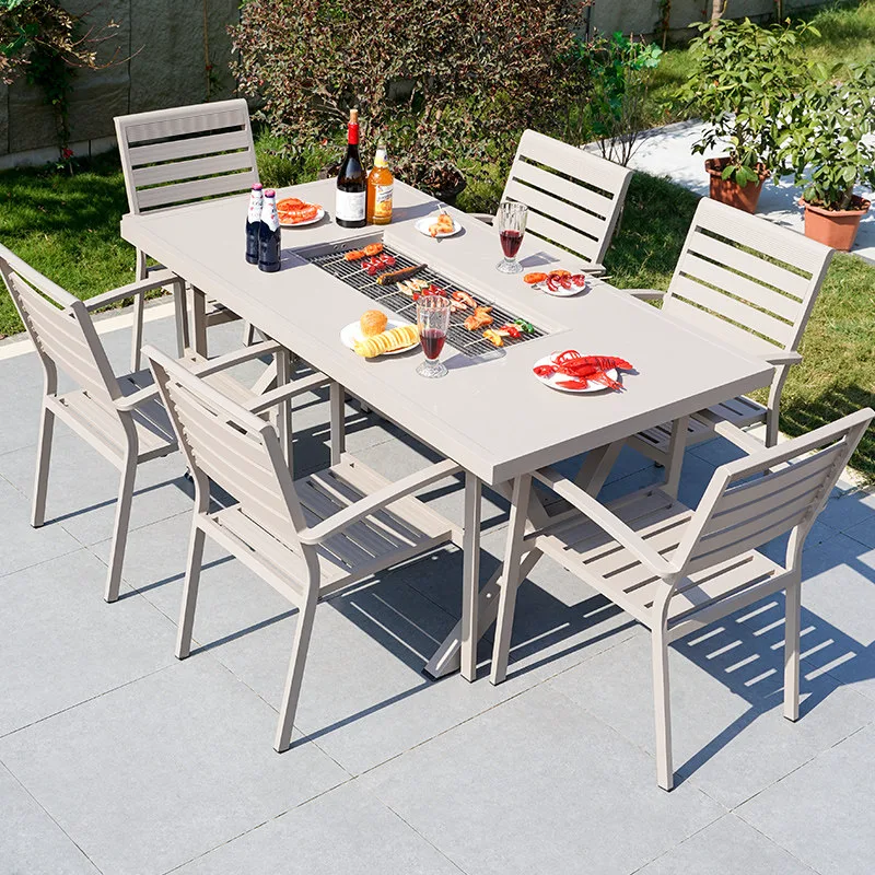 Комплект садовой мебели: 6 стульев Starbucks, гриль-стол круглый, 120 см