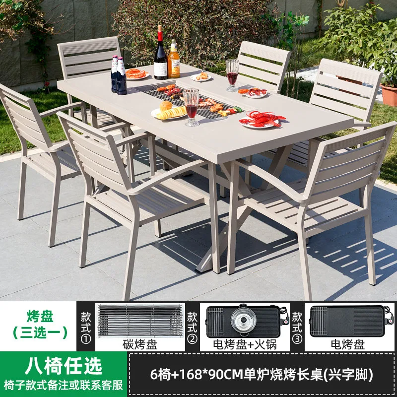 Комплект садовой мебели: 6 стульев, стол для барбекю с ножками в форме буквы X, 168×90 см