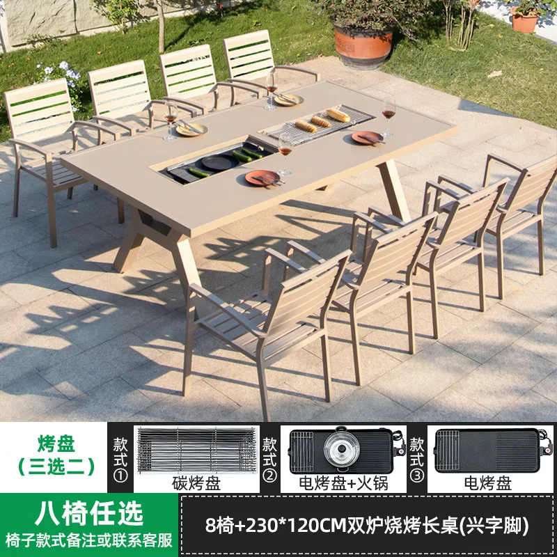 Комплект садовой мебели: 8 стульев, гриль-стол двойной с ножками в форме буквы X, 230×120 см