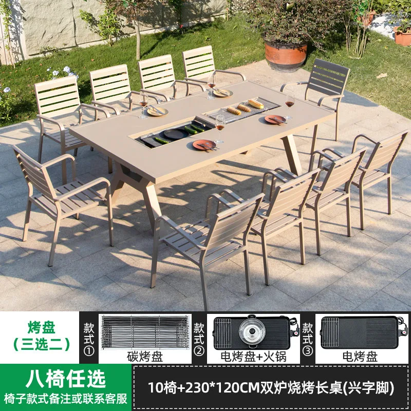 Комплект садовой мебели: 10 стульев, гриль-стол двойной с ножками в форме буквы X, 230×120 см