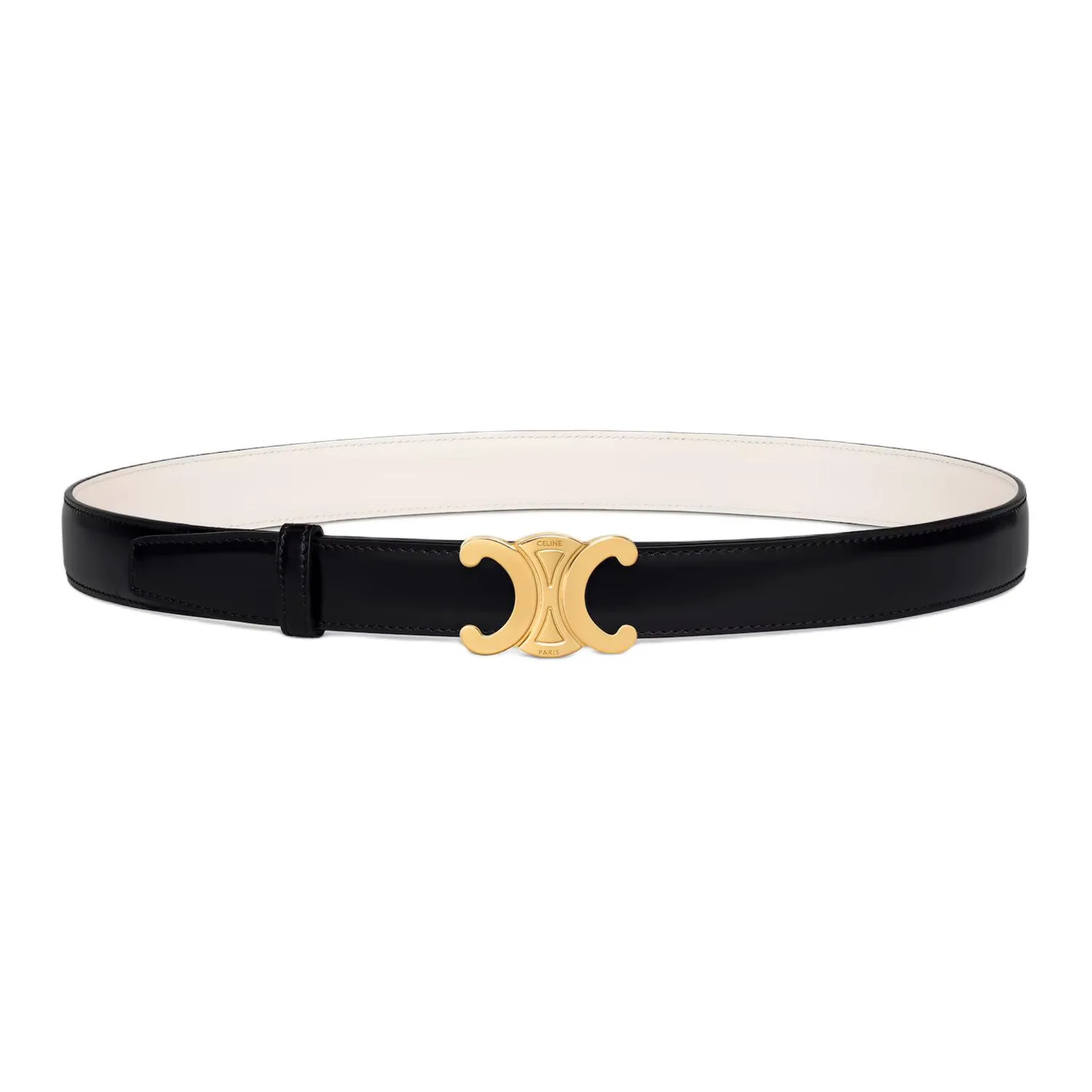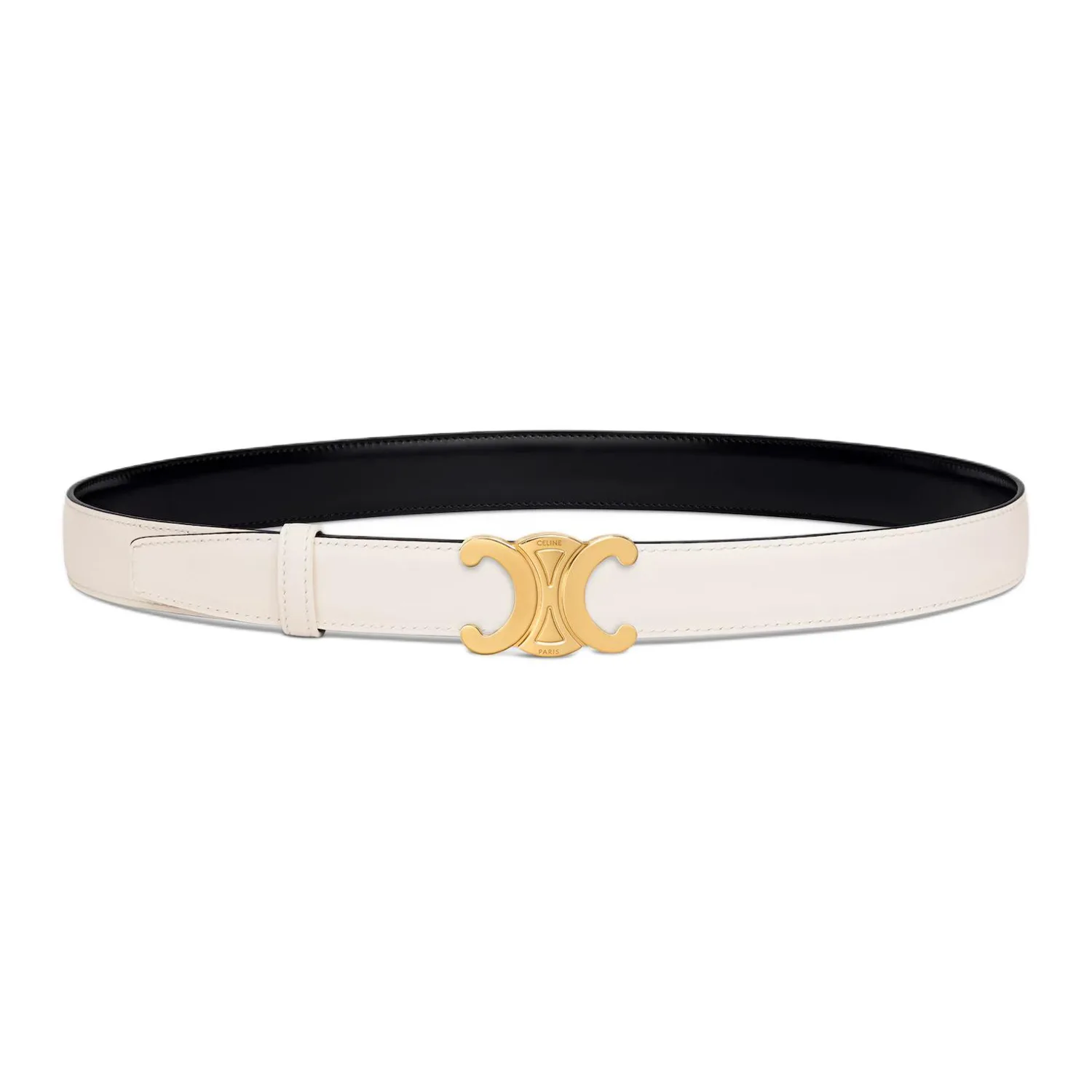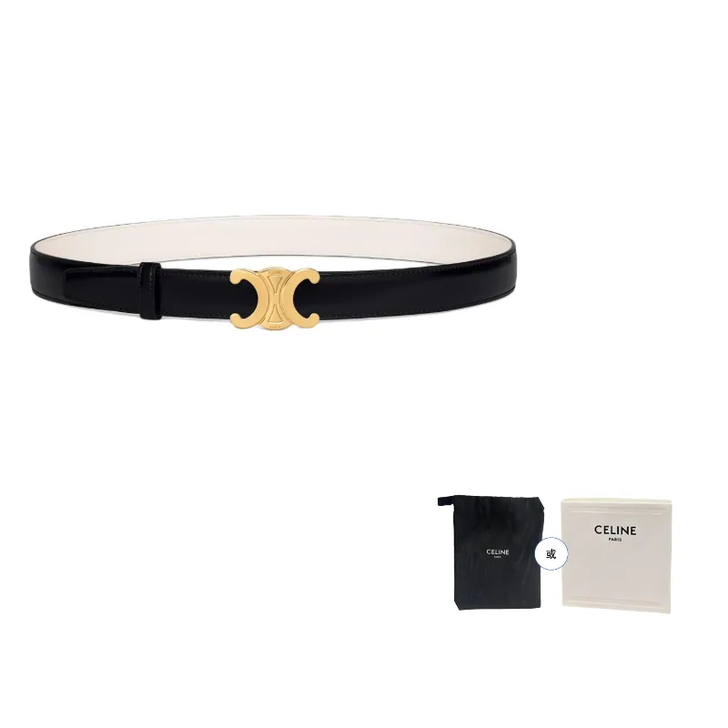 CELINE Ремень Taurillon Leather Women's Black/Ecru/Gold Width 2.5cm