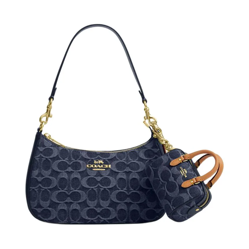 COACH Кошелек Rowan Fabric, Cow Split Leather Mini Women's Indigo