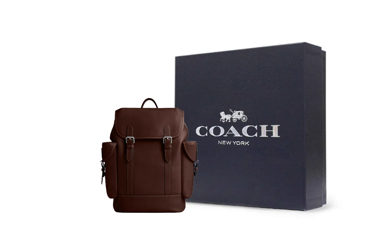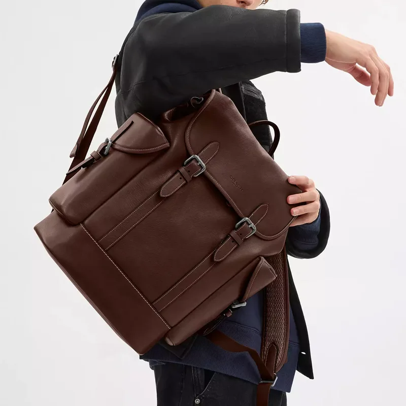 Hitch Natural Grain Leather Backpack Large Men's Maple COACH, basic set (bag+dust bag)