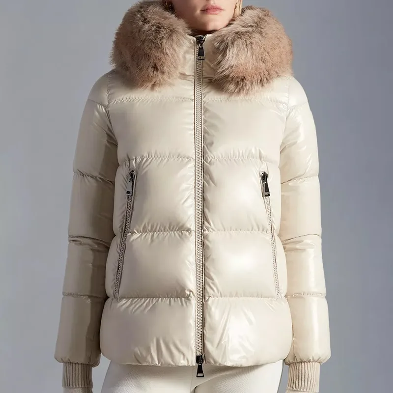 Moncler Laichefur Down Jacket Women's Gray Beige