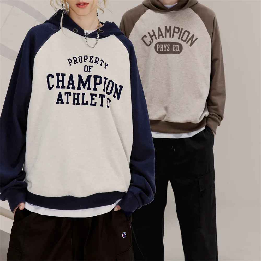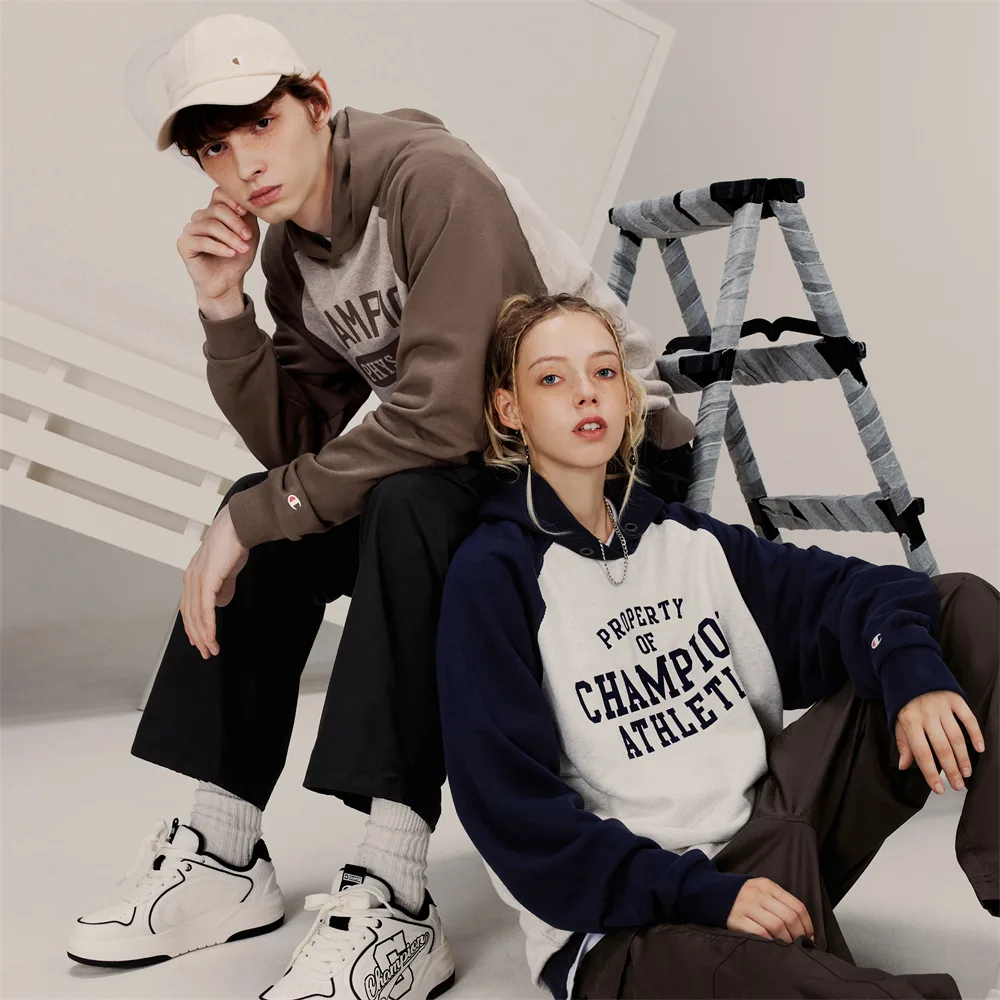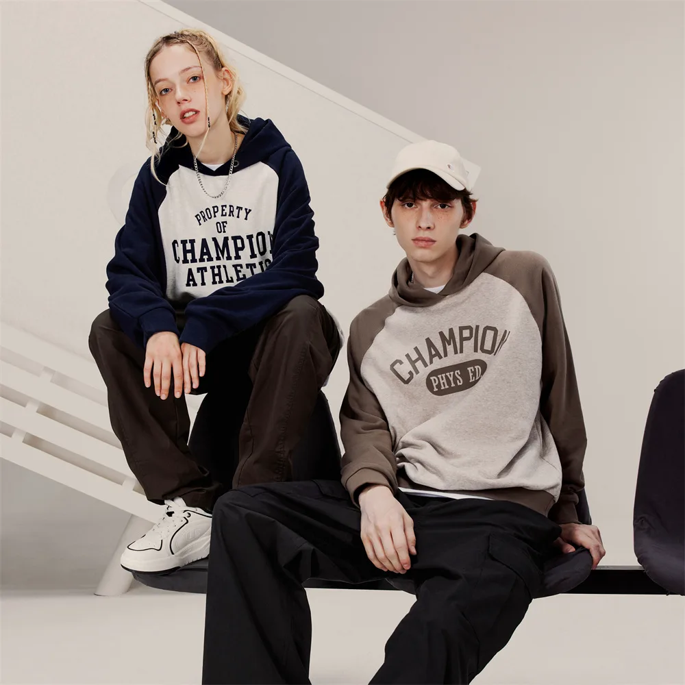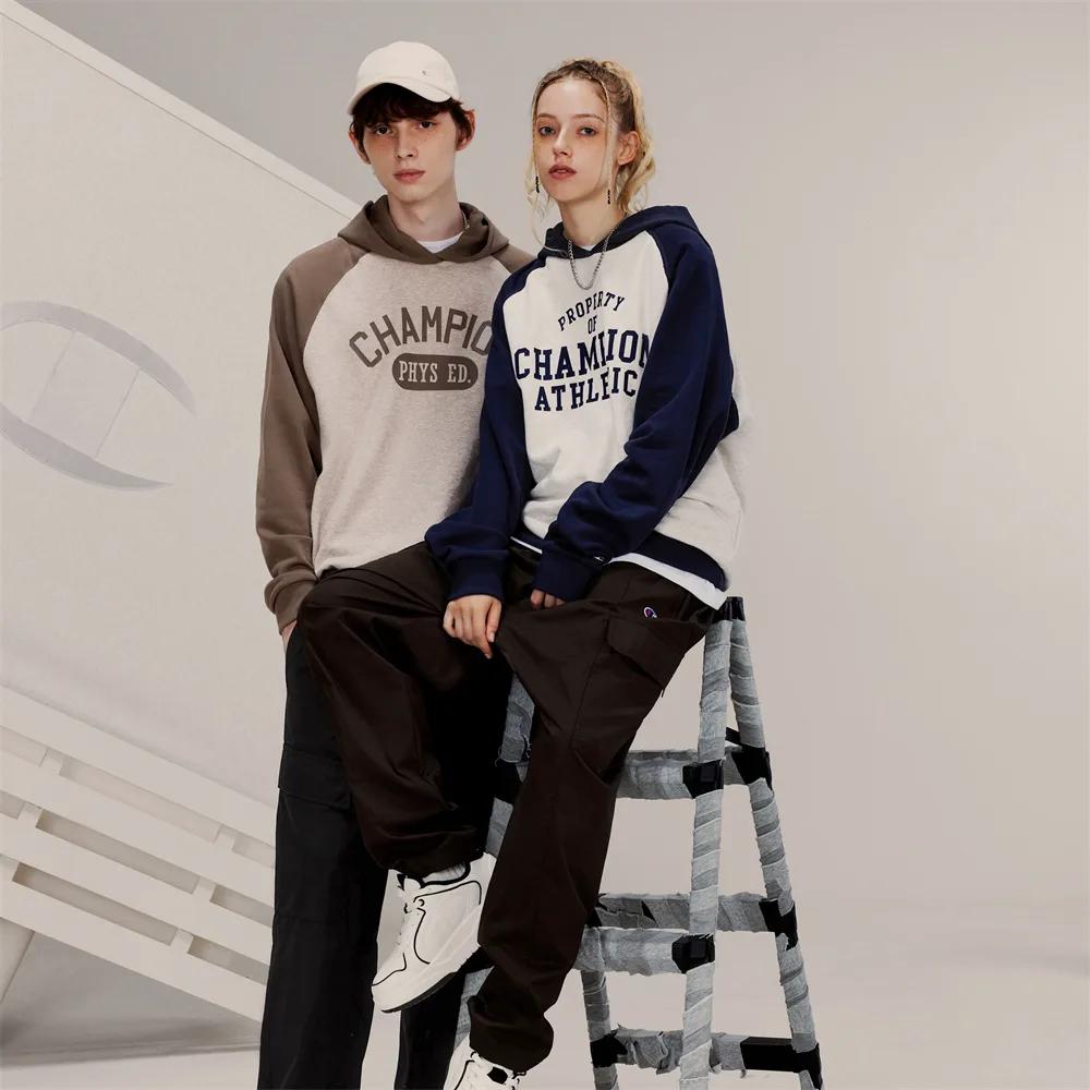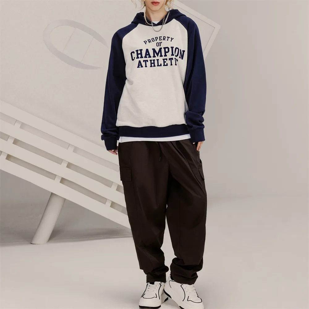 Толстовка Unisex Hooded Moderate Regular Champion, белый синий patchwork