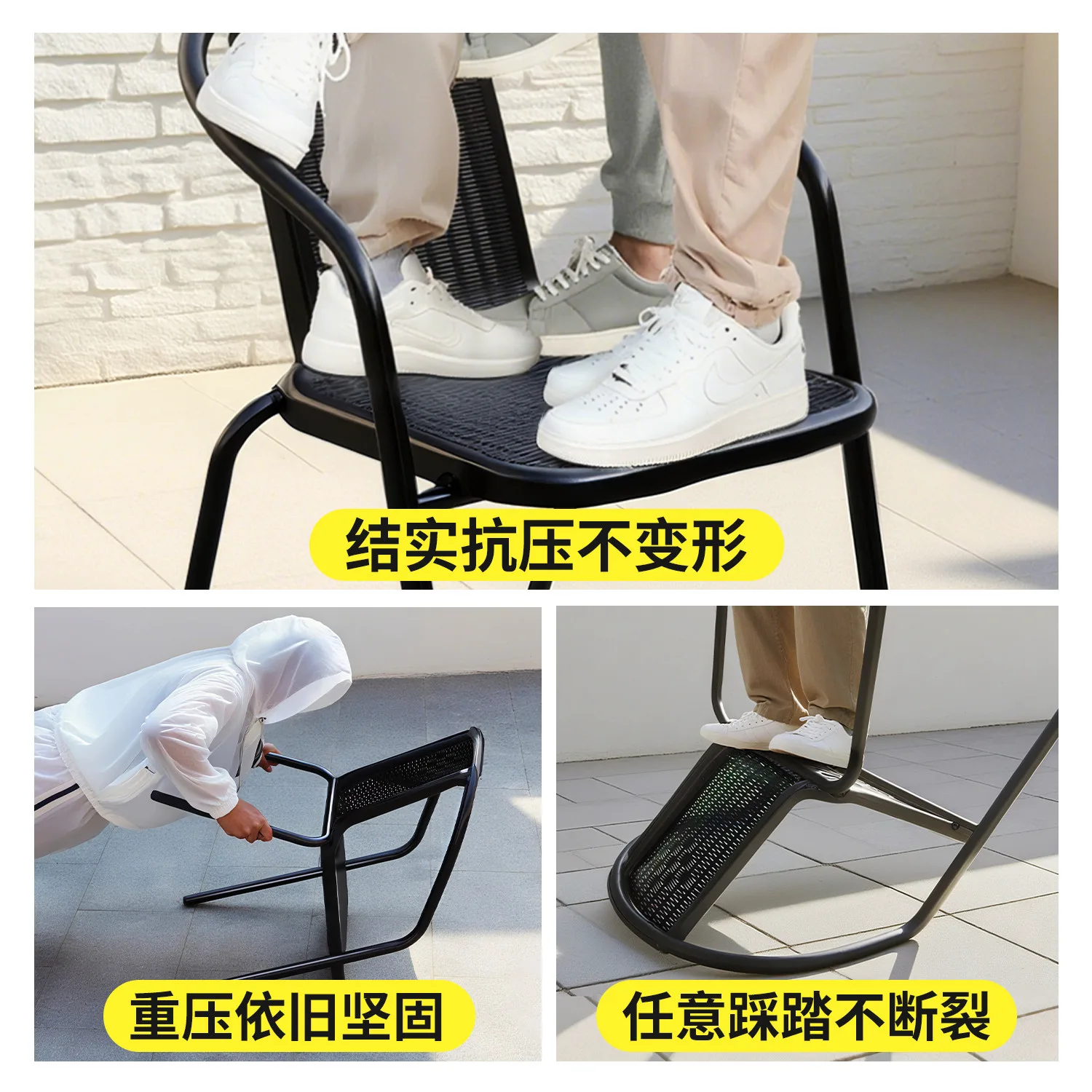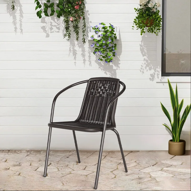 Этот стильный комплект в глубоком темном цвете (черный/темно-коричневый) идеально дополнит современный ландшафт или интерьер террасы. Сочетание надежного металлического каркаса из кованого железа и декоративного плетения придает креслам элегантный и лаконичный вид. Эргономичная форма спинки и плавные линии подлокотников обеспечивают комфортный отдых, делая модель практичным решением для использования на открытом воздухе.