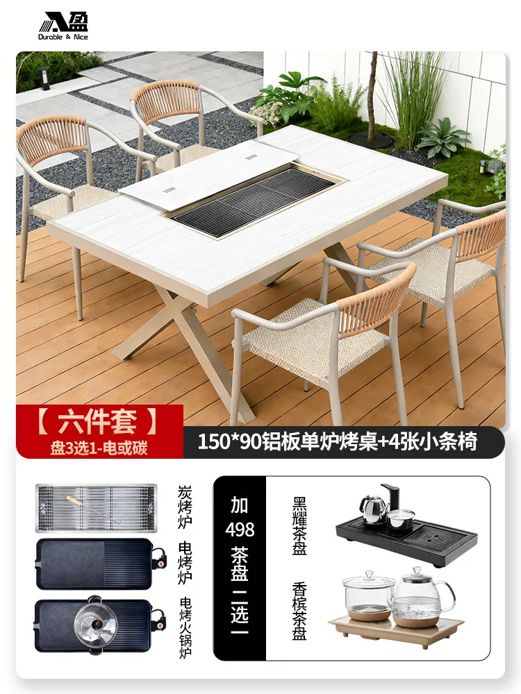 Комплект садовой мебели Baying, 4 алюминиевых стула Danton, стол 150x90 см, с одной духовкой для гриля 102 080₽