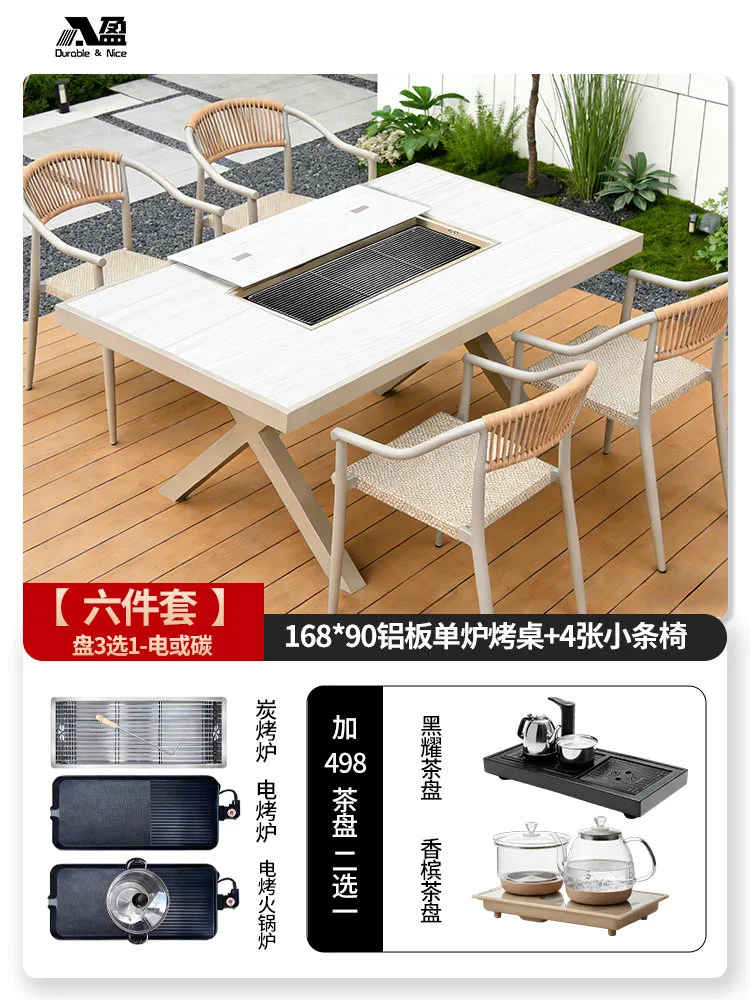Комплект садовой мебели Baying, 4 алюминиевых стула Danton, стол 168x90 см, с одной духовкой для гриля 102 597₽