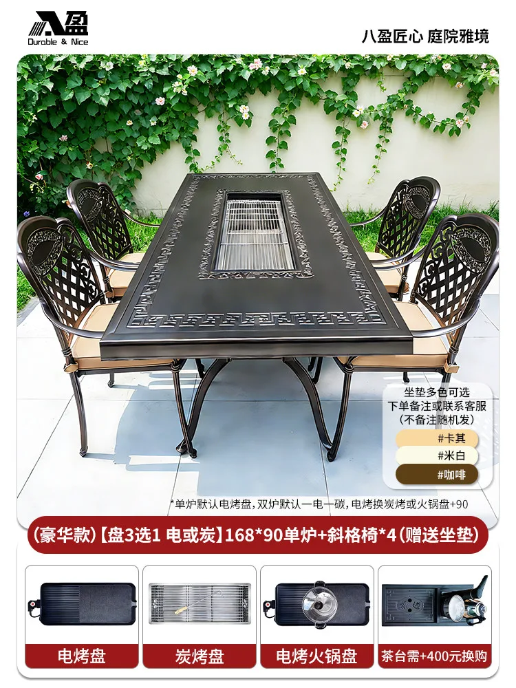 Комплект садовой мебели Baying, 4 стула с подушкой, гриль-стол 168x90 см, с одной духовкой
