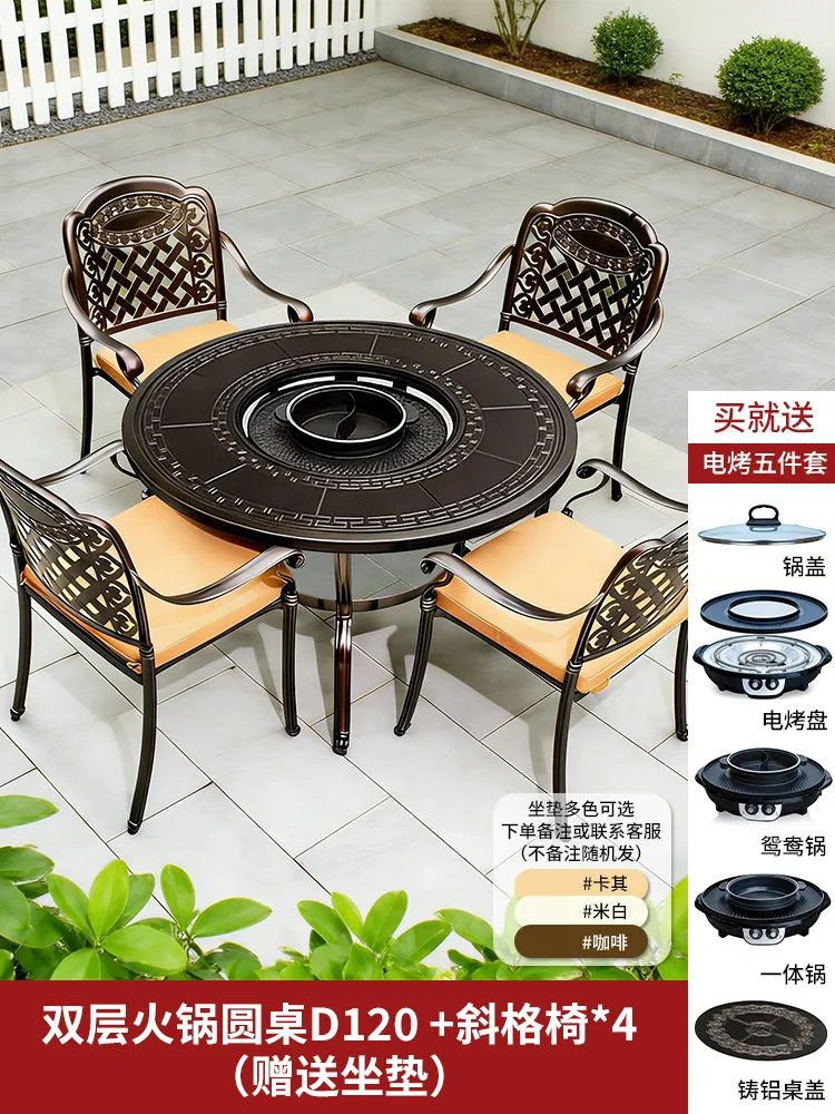 Комплект садовой мебели Baying, 4 стула с подушкой, круглый гриль-стол 120 см, духовка с двумя секциями