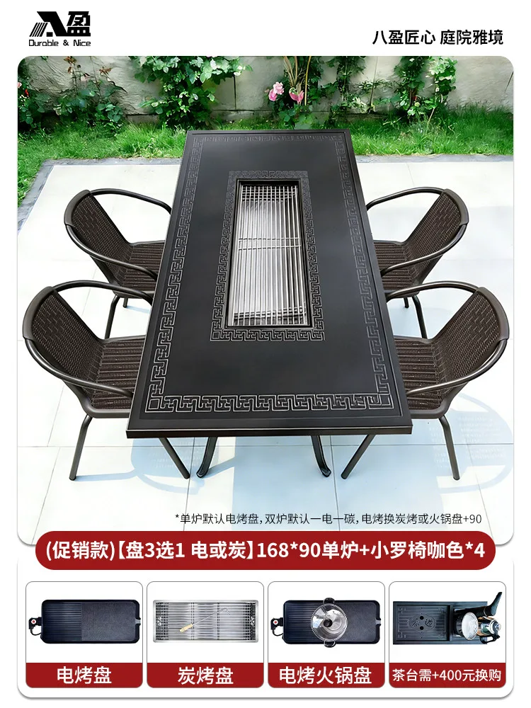 Комплект садовой мебели Baying, 4 стула с плетением, гриль-стол 168x90 см, с одной духовкой