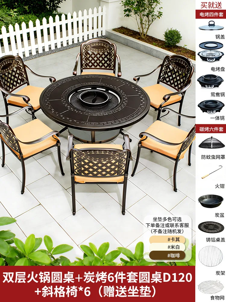 Комплект садовой мебели Baying, 6 стульев с подушкой, круглый гриль-стол 120 см, духовка с двумя секциями и гриль-решетка
