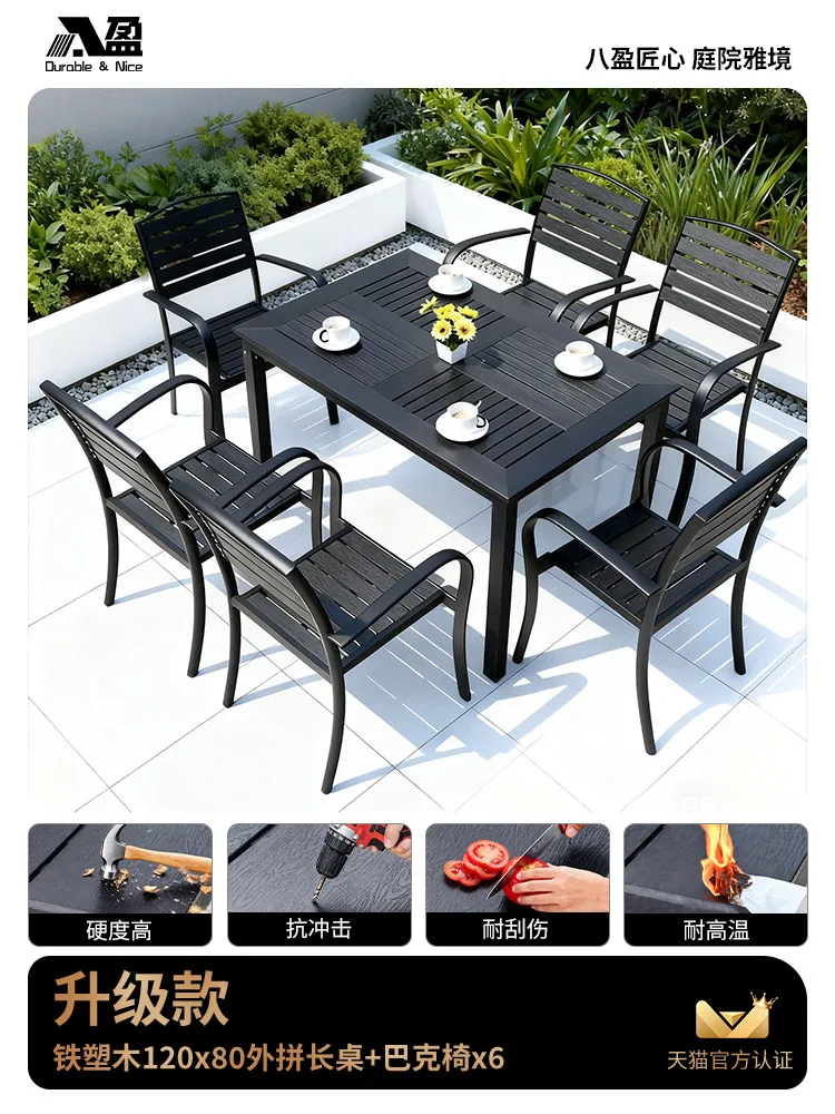 Этот функциональный обеденный гарнитур от Baying разработан для тех, кто ценит практичность и современный индустриальный стиль. Главной особенностью набора является стол размером 120x80 см с модульной (составной) конструкцией столешницы, которая обеспечивает высокую стабильность и интересный визуальный ритм. В комплекте с шестью креслами Buck этот набор превращает любую террасу или придомовой участок в полноценную столовую зону, готовую к приему большой компании.